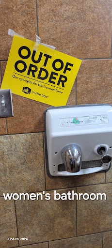 Floor sticky. Front counter sticky. Tiles missing on wall in dining room. Floor has not been swept in a while. French frys and trash on the floor. Men's restroom sink falling off the wall, no soap, no signs as to when it was last inspected and cleaned. No towels to dry hands, only a blower. No signs instructing employees to wash hands after using facilities. Women's room, no soap to wash hands, no paper towels, blower not working. The dining room has not been swept for a while. French frys and trash seen all over. The self service pop machine not working. No napkins in dispenser. Only ketchup and toco sauce out for guests to help themselves to. The curly fries were greasy. Actually watched the "cook" take the curly fries that were out to be sold, but were probably out there too long, drop them back into the fryer to heat them back up, then package them and put them in my order. The 350 lb plus person in charge kept coming out to the dining area to see how everyone (all total of 2 tables, 4 people) was doing and was telling us all that he has been busy cleaning up this restaurant. That it was in such poor condition when he got there. But he had to lean over the pass through wall to support himself to tell us this. He kept coming out and just leaning over the wall to rest. NEVER will we stop at this Jack in the Box, store # 7117, on the corner of MLK Parkway in the Fred Meyers parking lot, across from MCDONALDS which is where we always stop when going to Lincoln City, twice a month. Thought we would try something different. WRONG. MCDONALDS, we WILL be back. This was on 5/9/24 at approx 2:40 pm. Wish I had my phone with me to...