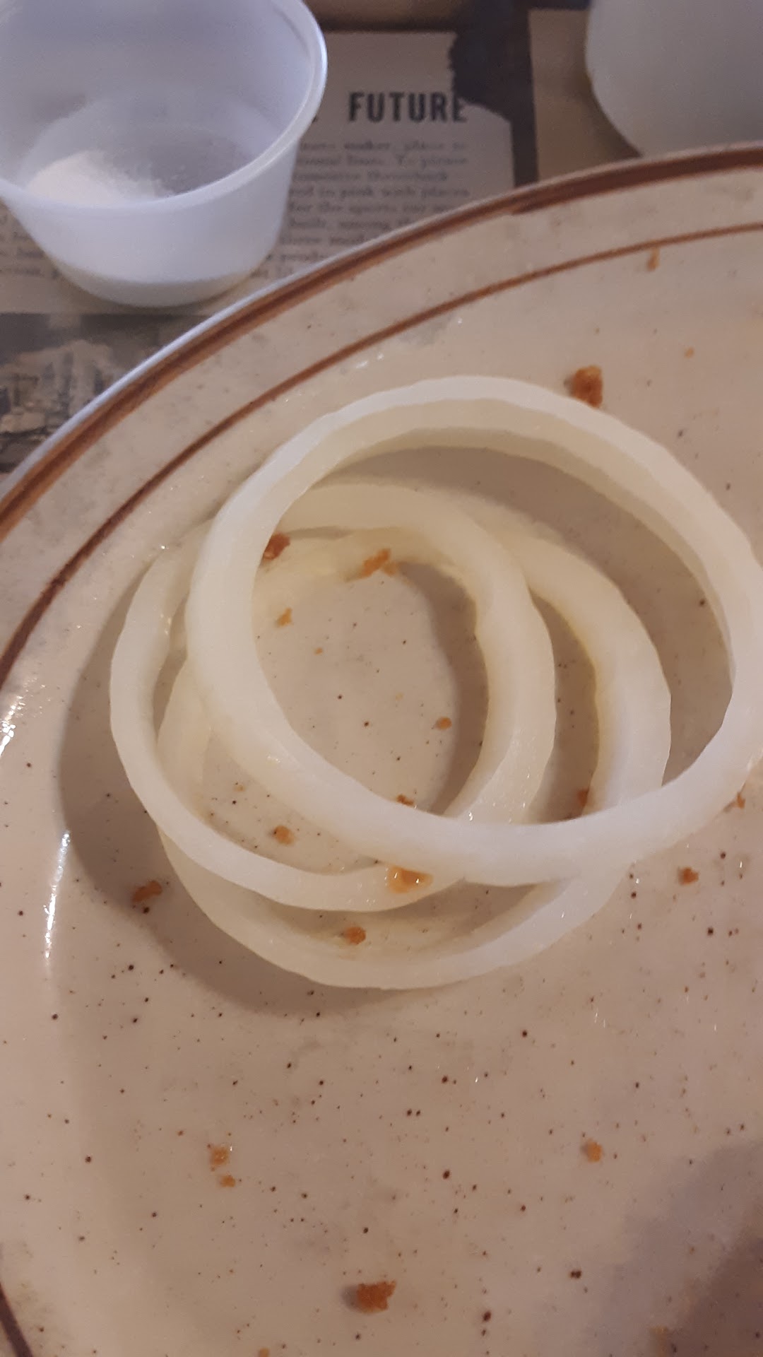 2nd time: lunch Ordered fish and chips with onion rings chowder and clam chowder The clam chowder had a good taste but needed to be thicker. Very watery. I was able to finish it though. I ate one of the pieces of fish. It tasted like the box pieces you get from Walmart and it was cold in the middle. The ranch was also off tasting. The tartar sauce was not very good. The onion rings were not the best either. I paid 24.95 for everything.