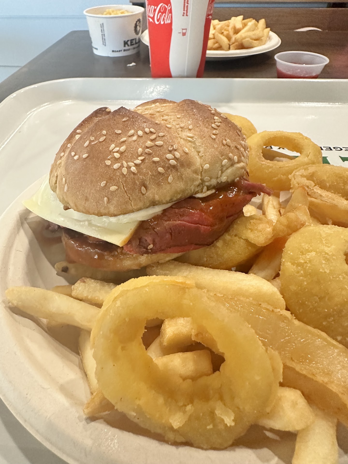 Read moreSo much disappointment, but we were warned by other reviewers. Did we listen? No. We forged ahead and slogged through Saturday traffic on the boarder. What a wasted trip when we live just down the street from excellent roast beef on 101a in Amherst. The good news is the service is good, the food was delivered promptly and the bathrooms were clean. The buns on the roast beef sandwiches were buttery and toasted - although squished flat like a Pizzelle cookie. As others have mentioned, I can confirm, the roast beef is served cold, a slice of American "cheese" is slapped on top and is not melted. I ordered horseradish sauce on mine, I think it was there, a thin spread could be seen under the cheese. I never tasted horseradish, definitely not the nasal clearing sauce I've come to expect in a great roast beef sandwich. The onion rings and fries also disappointed. Neither had any trace of flavoring, no salt. So bland. The batter on the onion rings was thick, the rings had a thick cut, that could have been ok, but the batter tasted like cornmeal. Neither the onion rings nor fries came out piping hot. Strange considering the meal arrived quickly, I'll jump to the conclusion they were both made earlier and not on demand when we ordered. The selection of soda came from those new machines with 100's of variety, so good options if you like soda. I'll take my $30...