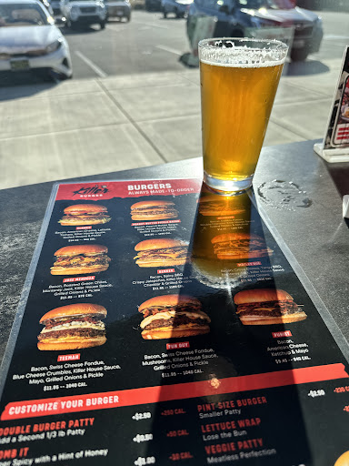 Read moreWas in the area. Saw the sign for Killer Burger. Decided to give it a try. Upon walking in the atmosphere is laid-back and chill music playing just at a perfect volume. Wooden structure centered in room with glass windows all over the outside the building. I was greeted by a lady who had a huge smile on her face, and when I told her that this was my first time being in the establishment, she very politely was able to tell me I can answer any questions you may have. I pointed at the menu of three different burgers that I was thinking about trying, and she pointed out 2 out of the 3 of those were her most favorite . I decided to go with a Jose Mendez burger. The burger has a nice hand, pressed burger, patty, bacon, roasted green chilies, Monterey, Jack, cheese, grilled onions, pickle slices the length of a spear pickles, and a killer house sauce. I asked what kind of fries they had. They only have one style and they have probably a dozen different dipping sauces to choose from. I asked for a recommendation and since I like spicy, I went further cheese, mayo, spicy dipping sauce, which goes on most of all their burgers, and it was amazing. On first bite of the burger it had the most flavorful packed seasoned well, burger that I have ever tasted. I was able to order a boneyard RPM beer to go with it and I strongly recommend this establishment to anybody anytime over Nancy Jos or five guys hands-down one of the best burger joints I’ve ever tasted.