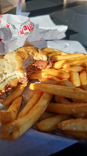 Read moreI stopped by this new to me burger joint just a few days after opening. It was Thursday at 2:30pm. The online ordering was not yet up as the new restaurant employees are still getting the feel of everything and trying to serve in person customers as quick as possible. The line was to the door. Took less than 10 minutes to get my order placed by the 1 person taking orders. Waited about 15 minutes for my food to be ready. I was kindly greeted upon entry by a manager who was letting people know the wait was 10 min plus 20-25min after ordering. It actually went quicker than I was advised to expect. I went outside my comfort zone and ordered the PB bacon burger. It was just under $11 for just the 1/3lb burger. Another $3.50 to add on fries which comes with a choice of sauce a selection of about six. I opted for the house sauce for my fries. Added on a fountain drink for another $2.95. Craft beers were available for $6.00 as was one hard cider option. I think domestic beers were less. My burger was tasty and messy. Loved the PB sauce. It was a sweet crunchy PB and paired well with the pickle and bacon. All their burgers come with bacon. The fries looked homemade and were good but a bit on the dry side. The house sauce was more vinegar pickle flavor than mayo based. I think I will opt for a different fry sauce next time probably the PB sauce that was on my burger. I like PB and don't usually opt for bacon on my burgers but this burger tasted great. Very different and pleasing to the taste buds. I ate the entire burger and was quite full but not stuffed. Was full enough to not finish the fries. Over all I will stop here on occasion for an indulgence but at just under $20/person for a "full meal deal" I would not consider it family friendly on the budget. It definitely is a niche burger and I did hear the manager say they have had a line from open to close since opening a few days ago. Upload their app for a free sharable fry($6 value) and rewards. Their app was down when I visited so I have about a month to redeem...
