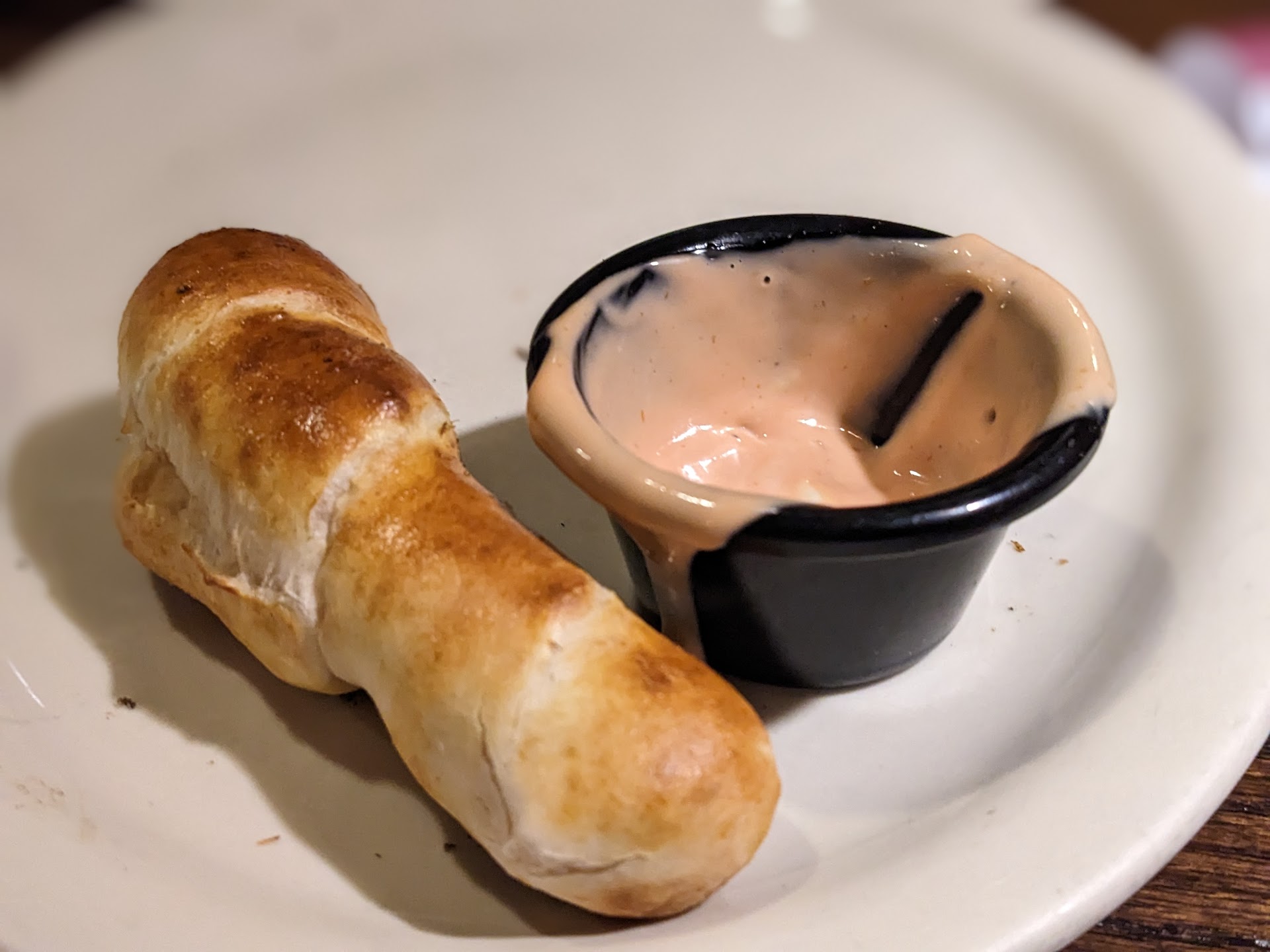 The restaurant can't quite figure out what it wants to be; it's Italian / Venezuelan fusion. ... So naturally, we decided to try both sides. The arepa was delicious... Chicken salad with avocado. Mm. So creamy and tasty. Would definitely order it again. The garlic knots were slightly over cooked, but yummy, especially with the exquisite marinara served on the side. His entree, chicken Alfredo, was not incredibly noteworthy, just creamy and cheesy. Honestly, I wish I'd stuck with the arepa, because....