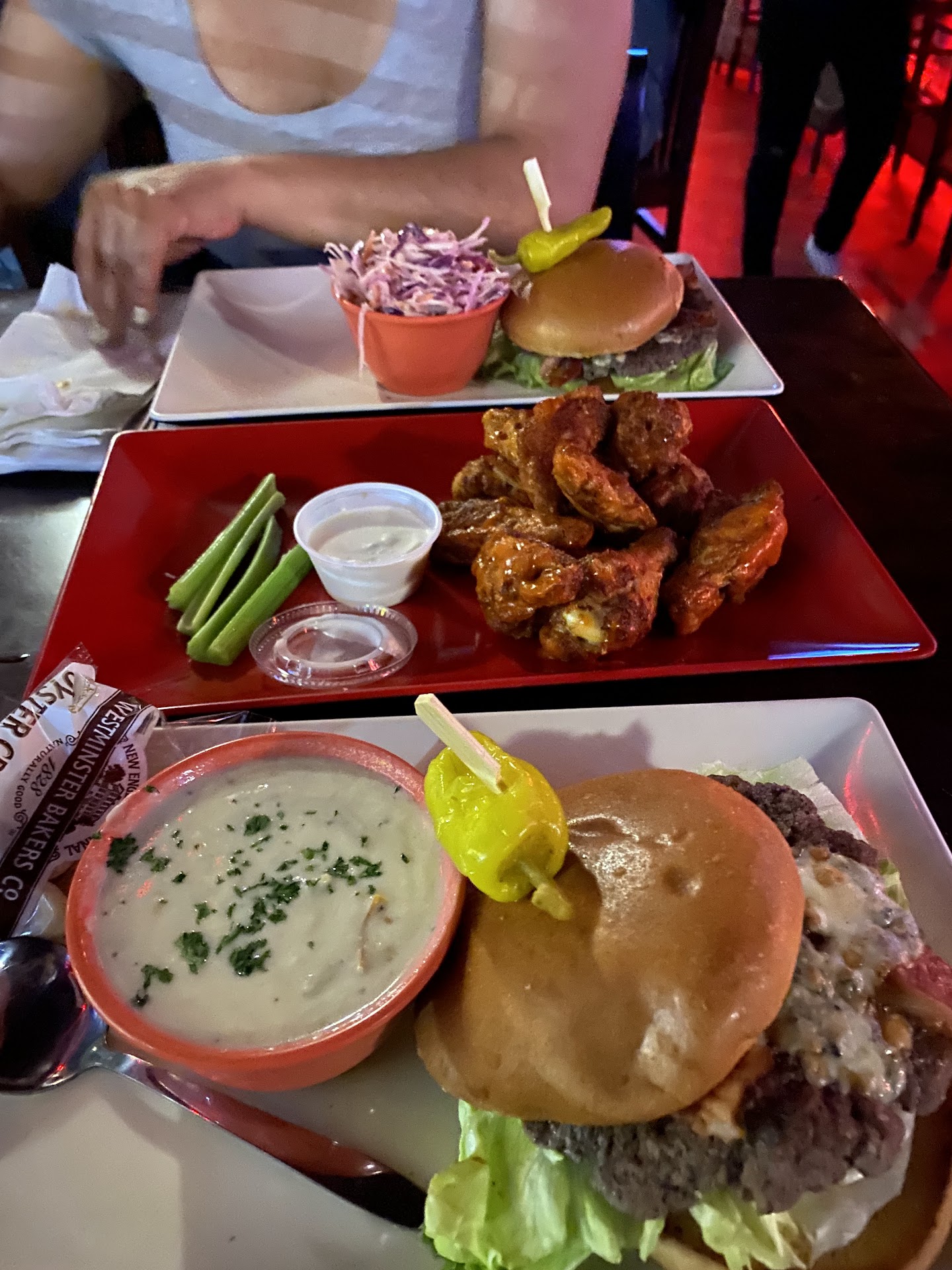 The service was quick as we ordered food and drinks. The 10 piece buffalo wings were a 8/10 (could’ve been a little crispier) and the burgers were a 7/10 (could’ve been a bit thicker of a patty. was also a little dry). I ordered a Shipwrecked (Ro&Co Whisky, Koval Ginger Liqueur, Lemonade & Sprite) which was strong even after it was mixed and watered down which gives it a rating of 7/10.