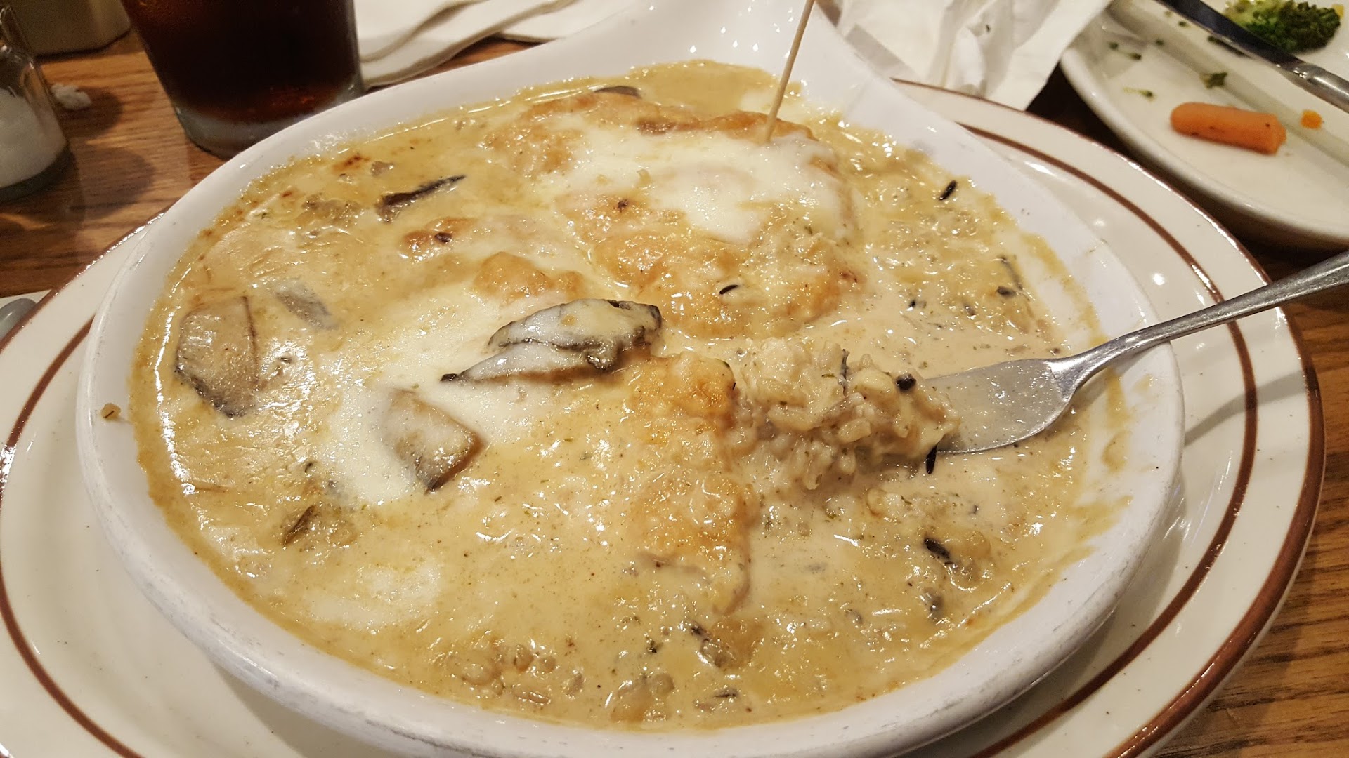 Last and definitely least was the Chicken Marsala that I ordered. Chicken filet sautéed in a Marsala wine cream sauce with sliced portabella mushrooms, topped with melted mozzarella cheese and served over a bed of angel hair pasta. I will say I changed the pasta to wild rice. I thought they would bring the rice on the side like they did my husbands. I get that its my fault for not communicating that and I was willing to overlook that. So I grabbed my fork and knife and went to work. It was gross. I have only sent food back one time in my life and as of last night I have had to change that to twice. The creams sauce was thin and runny, Chicken Marsala is supposed to be a savory dish and it was overly sweet. I will say the portion was generous, however, that becomes a moot point when you have a pile of yuck in front of you. This dish was listed at $15.99.