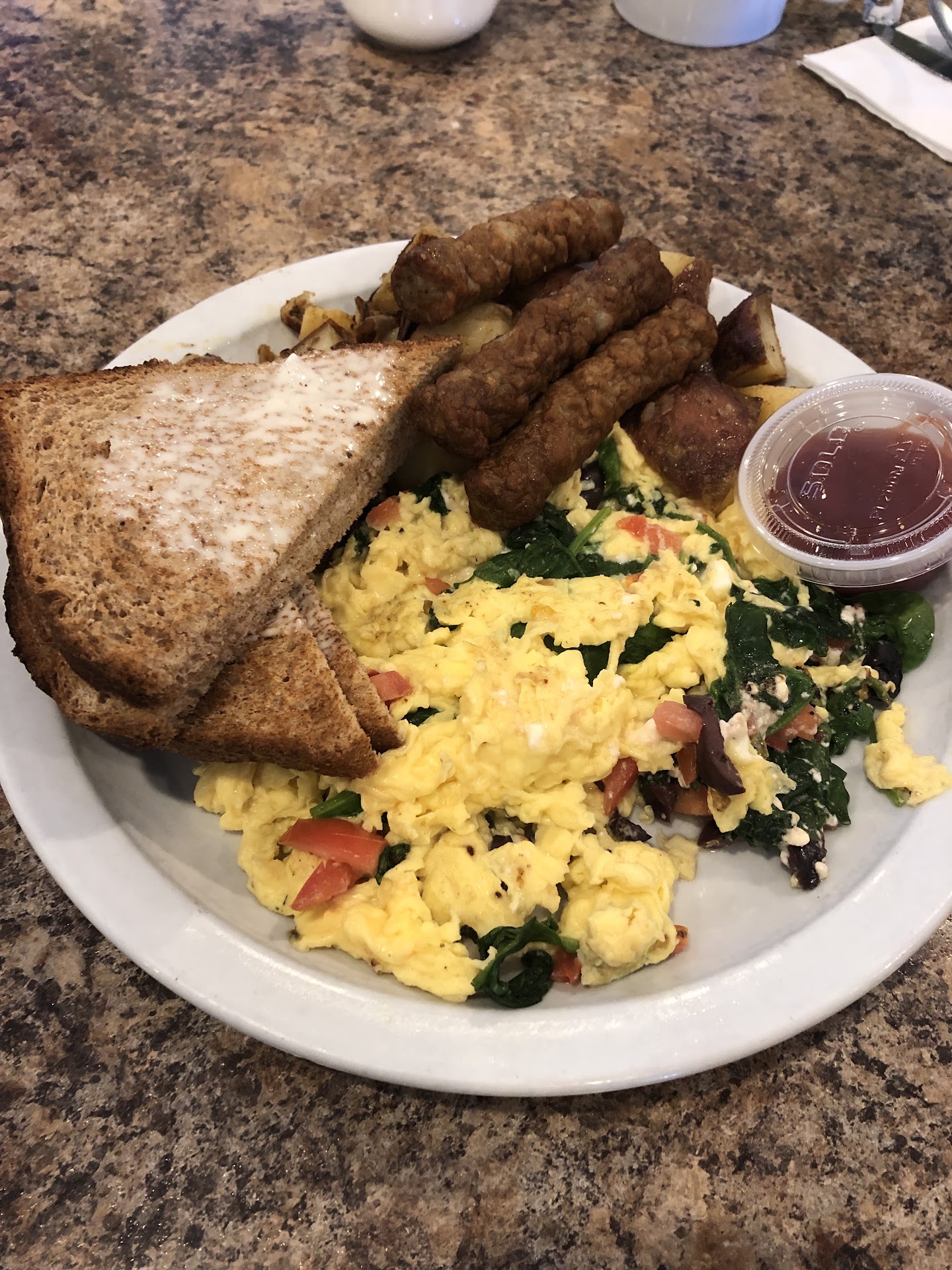 Read moreFood is good. Be careful of things you might add on to your food. A side of strawberries for French toast was $4.50. When we got the bill we asked the manager to confirm that was correct. Her response with a smile and nod was, "Yes, fresh fruit is expensive ". It was about 3 strawberries sliced up and macerated. Looking at what I ordered was a poached egg on an English muffin with Hollandaise Sauce was $3.65. My husband and I thought that was a steep price for strawberries. Another item I looked up on the menu was their Veggie Benedict. This is $8.65, and it comes with a cup of fresh fruit. I find it hard to believe the breakfast would only cost half that and the other half of that price is the tiny cup of fresh fruit. I also found that when I went there in the past, homefries and other things were cooked somewhere different from the meat. Being a vegetarian I was happy because it opened up a lot of choices. This time, I found everything is cooked on the same grill, so my choices were limited. My husband ordered an omelet and he likes it, however homemade corned beef hash would have made it better. I feel the manager could have acted like she cared better about the ridiculous pricing for a few strawberries, they...