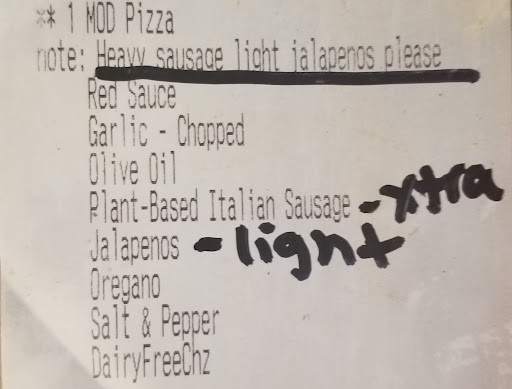 Read moreMOD is great and we’ve had it several times! I really like that you pay a flat amount for the kind of pizza, and all the toppings are free, so you can customize the pizza however you want without having to pay extra. It’s outrageous that other companies charge a few dollars per extra topping when the pizza itself is already $25+. But I digress. This place is especially great if you’re trying to feed several people, and no one can agree on what toppings to get. They have several kinds of crusts, and lots of fresh toppings. The staff is friendly. Sometimes, the crust is a bit burnt, but it’s not the end of the world. When I went yesterday after we ordered online , I had to wait probably about an additional 10-12 minutes past the time they provided, and after they asked for the name used for the order, it turned out that the pizza had been sitting to the side, not in the area designated for online orders. Other than that, the...