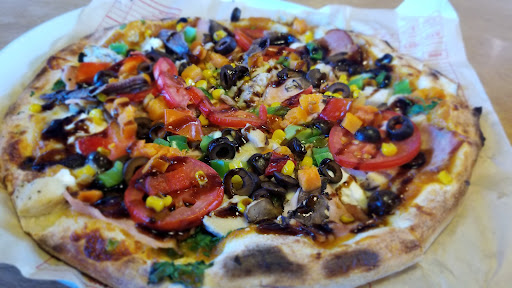 Fantastic pizza with quality ingredients which doesn't bother my stomach like pizza from other places. However, a change in perspective may substantially raise the quality of the taste experience and happier customers across the board. I, as I'm sure the majority of patrons, would love it if more care were taken to make a uniformly built pizza, rather than dumping toppings on to the pizza from high above because it magically creates a unique and more tasty pizza...it does not and, furthermore, it cause an unevenly tasting pizza where one slice may be covered in pineapple a, yet, another slice void of any. Rushing and mixing up ingredients in the bins also creates problems w/those who do not want to find certain ingredients that we dislike on or in our pizza. Ideas of consideration.