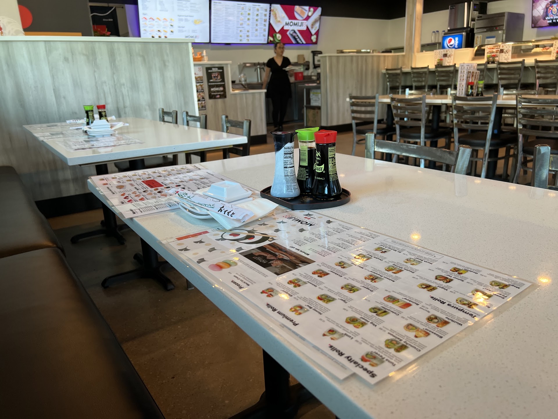 First I want to say I normally like Momiji. All in all this was an OK experience but there were a couple of fails on this experience for me. Maybe I'm just remembering poorly but it was more expensive than I was expecting. I planned to buy 1.5 rolls /person but my son and I were both still hungry and had to order a 4th. This made the meal a bit pricy (over $20/ea with tip) for what it is... Even though delicious.