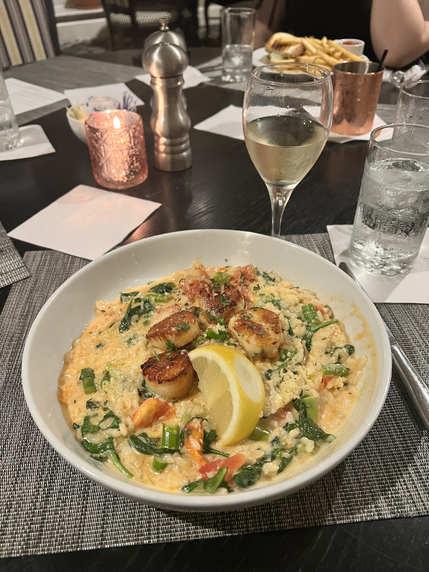 This was the worst dining experience my partner and I have had in a very long time it ruined our trip to Salem. My partner and I both ordered burgers. I asked to substitute cheddar for American cheese and grilled onions for the raw it came with. The menu states the burgers come with seasoned fries or can be upgraded to Parmesan. I specified I would like the seasoned fries (I didn't want any fancy ones, just regular). The server wrote both of our orders down. When the food came out, my burger had American cheese, raw red onion, and I was given Parmesan fries.