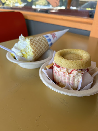 However, what stands out is the service. At our last visit (when it was still warm), we showed up for ice cream, and the line was probably 10 or more deep, and the young woman serving took payment and served each order herself -- she told us that another worker had called in, leaving her to do all the work by herself. I felt stressed just looking at the line -- but this worker served each person with a friendly smile, and did an excellent job, until the owner showed up (and he's a great guy too -- friendly, hard working, and generous!) to help cover. Outstanding...