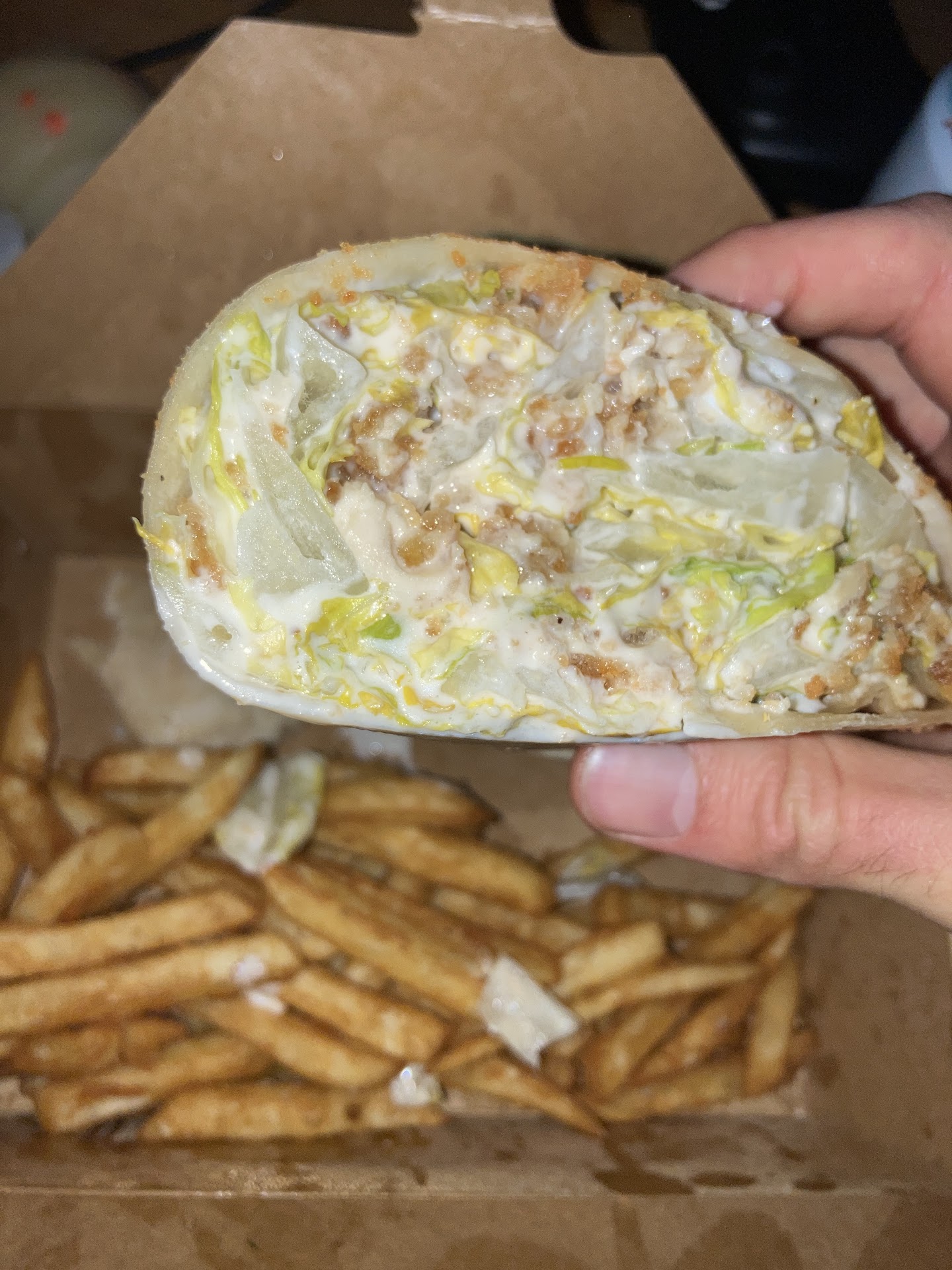 The wrap itself wasn’t terrible in terms of flavor - but there was no chicken. It was like bacon bits for fried chicken. There were a handful for pieces of breading that suggested there should be chicken, that they knew of the concept of chicken…but short of a small 1 inch, depressingly thin sliver, it was lettuce, a bizarre amount of dressing, and breading.