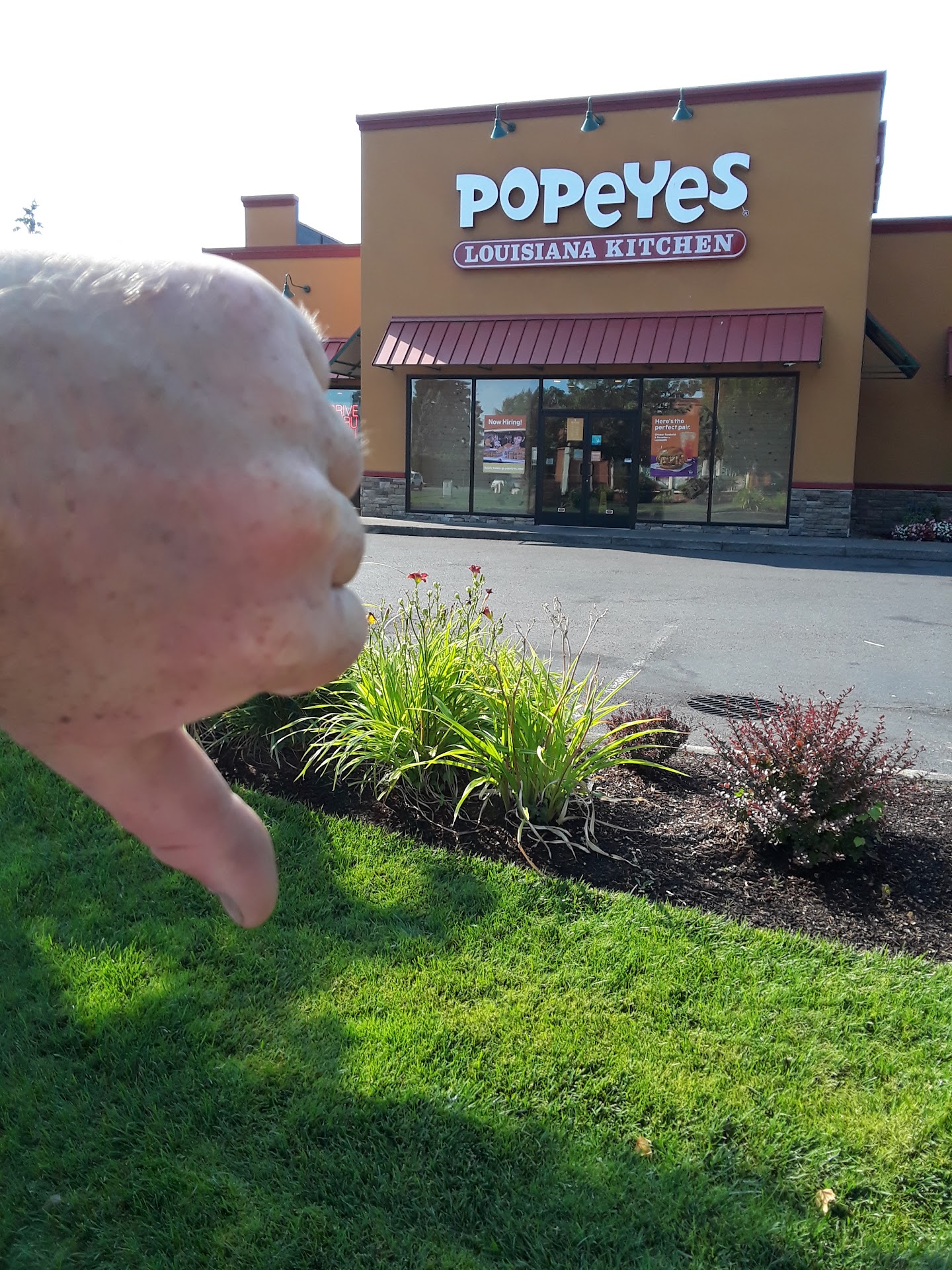 Read moreMy partner and I decided to go here after not having Popeyes for quite a long time (mostly because it's just kind of expensive for some chicken and there are many more cost effective options available, just not with their recipe) and decided to go through the drive thru. The person who took our order was nice enough, then we got to the window and the person giving us our food didnt speak a single word to us as she was taking the next and only other person's order (you would think unless they're slammed the person giving us our food would be able to at least say hello, however i didnt read too much into this in the moment). It wasn't until we got home and went to eat our food that the real disappointment set in. We both got the 5 piece chicken tenders combo for $14.99 each and when we opened the boxes, first glance the tenders were just shrimpy/pathetic. Then biting into them I couldn't actually find much of any chicken, and any I did find was maybe a quarter inch thick piece of chicken jerky at best. I gave up after deciding it wasn't worth the shredded up gums from this nearly inedible deep fried chicken jerky and batter strips. They each came with biscuits, which were bone dry and rock hard. He got fries as his side and I got mashed potatoes, which were both okay, pretty much what youd expect from a fast food place. But the rest we were literally unable to continue eating. Just unacceptable, and the fact that this was considered sellable for $15 is just appalling. Never...
