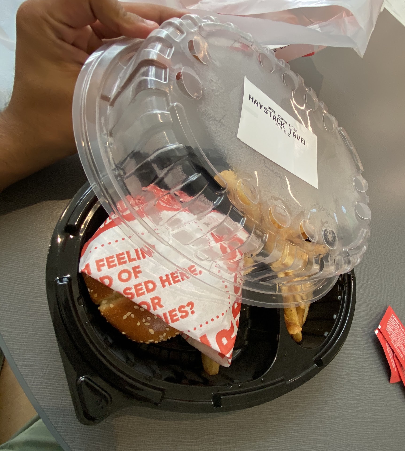 I was hoping another door would be implemented as an extra barrier for those trying to eat their food in the future.This way no one has to smell body fluids and waste as they are eating their meal. This would cost some money and time to fix, but I find having a table so close to a bathrooms where I’m spending money should have more of a distance from each other.