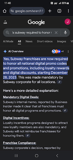 Read moreI ordered a salad with double meat and the salad was nasty and no double meat I asked for a fork and croutons and did not get any I also ordered a bag of chips and a drink did not get either one my chicken teriyaki sub was nasty when I called they wouldn’t refund my money and took my number to call me back and never did I had a $40 dollar order and I will NEVER order from subway ever again and I don’t recommend delivery from this subway to anyone because unless u are standing right there ur order will b wrong and missing stuff this is the 3rd time this happened never again will they get a...