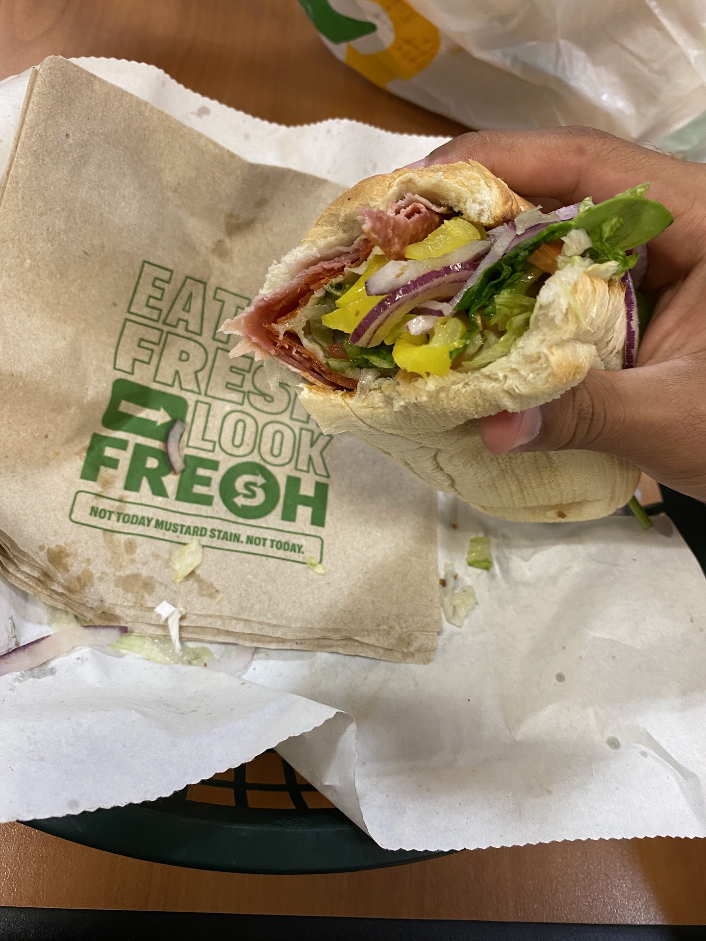 I have to give the Lone Lady credit today. I saw a couple ahead of me ordering their food and the woman went full Karen mode because of a flatbread she ordered. She kept claiming that all the other Subways she went to did their flatbread sandwiches different and that she was doing it wrong and that she was trying to rip her off by giving her a 6-in flatbread instead of a 12-in flatbread like she requested. The lady behind the counter politely insisted that it was indeed a 12-in and that that is how the branch she works at does flatbread sandwiches. The woman customer was getting more and more unhinged about the whole thing while her poor boyfriend/husband was trying to calm her down amd defuse the situation. The Karen eventually stormed off in anger leaving her partner sheepishly apologize for her behavior. I feel bad for that guy. I talked briefly with the lady while I was ordering my sandwich and she said she's used to it. She said she's even had sandwiches thrown at her. Which in my opinion is just sad. I thought I would write this review to remind everybody that the employees who work for these corporations are not your enemy. Make sure to treat the people who serve you with dignity and respect. And good luck to that guy who had the Karen, looks like he's going...