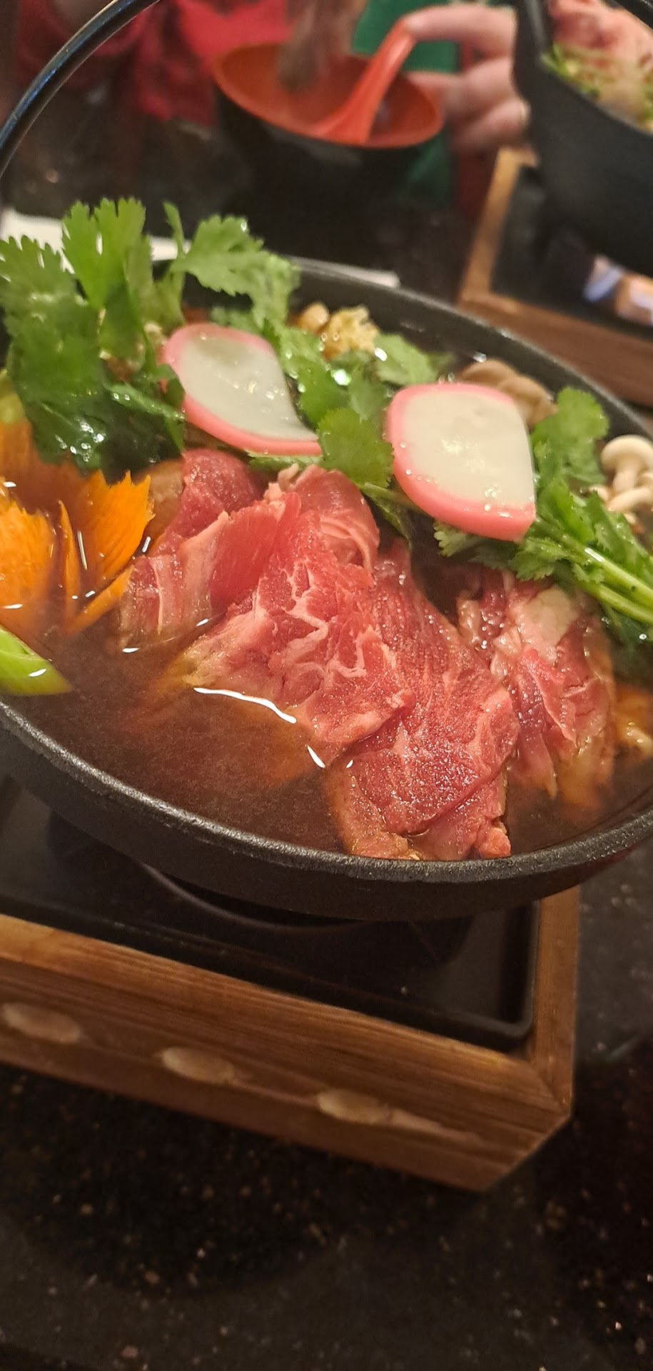 No longer Sushi Kyo. But I stopped in for a lunch with a friend because I saw the Facebook ad for hotpot. Something Salem doesn't have so I was excited to try something. Sukiyaki was the actual name of the dish. •Lunch $15.99 •Dinner 19.99 And I think it was worth it for the cost and experience. The dish does take a little bit for them to make it. But that wasn't a issue because you can just munch on some plates before it comes. We got some cucumber salad, cucumber rolls, and a seared peppered fish that was a flavor bomb.