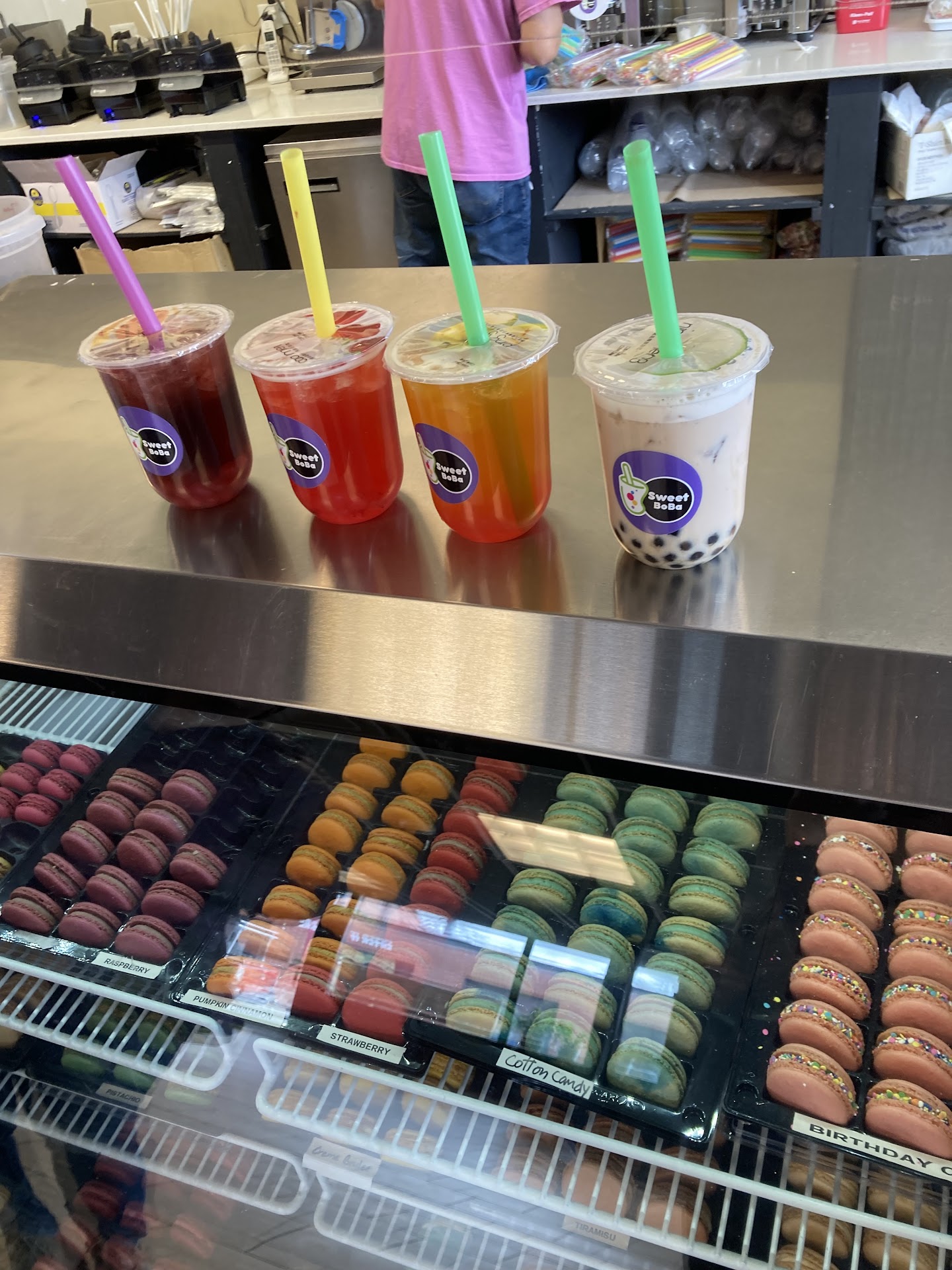 They serve more than just Bubble Tea. They serve boba drinks, milk teas, smoothies/slushies, cookies, macarons, and more. So we came here on a whim. My sister, brother in law and friend really liked their drinks. I ordered the Taro. To be honest, I like mine too but it did not taste like Taro. We liked the chocolate chip cookies. I like how the macarons too.