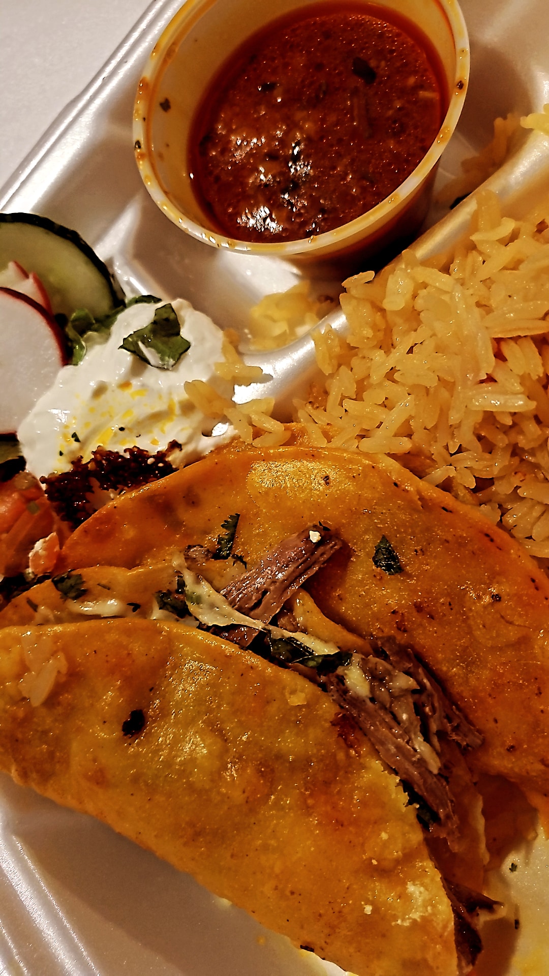 Read morefriendly staff, amazing food, can’t say anything bad about this place. i came here for the first time a month ago and ordered carnitas tacos. when i got to talking to the cashier, i told him i was picky about my birria and could not find any place that makes it authentic as i grew up eating it. he allowed me to try a birria taco for free, which he absolutely did not have to do, because i would have come back to try it another time regardless based off of how good the carnitas tacos were and how kind everyone was. but i have to say, it was absolutely mouthwatering. everything here is great and the staff are so nice. i am writing this as a sit here on my second visit, thank...