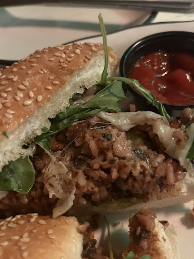 I had the Mr. Falafel sandwich, and I was still talking about it days later! It was so good—perfectly balanced flavors with just the right amount of tzatziki sauce (heavenly), all wrapped up in a soft wrap. The one recommendation I would make would be to cut the falafels into four pieces just to make it easier to eat. But to be honest, it didn’t stop me from devouring the whole thing, and I will be back to eat another one! But it will be a tossup—do I get the truffle burger or do I get another Mr. Falafel?