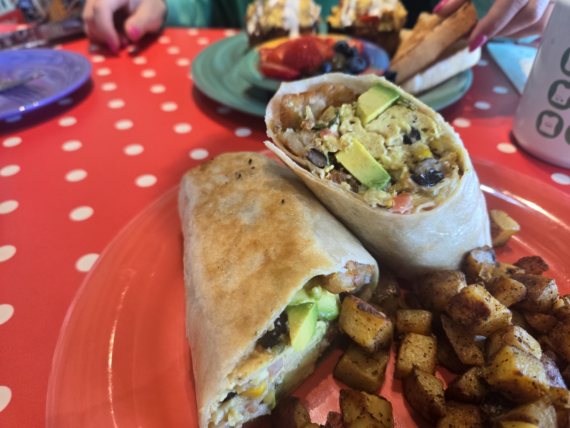 Coffee was fresh and hot. We ordered Tots, egg rolls and the pancakes.
