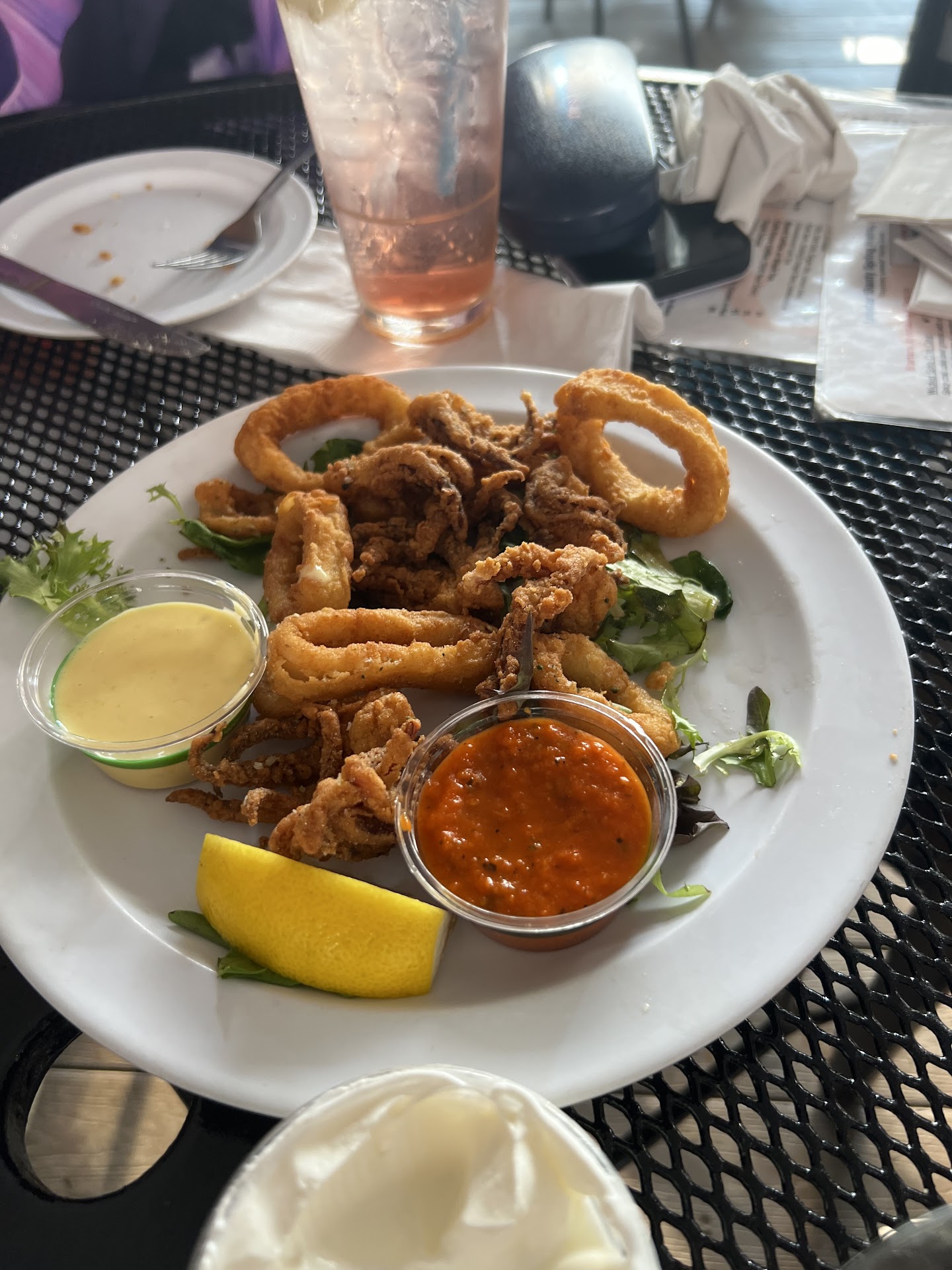 The Lobster Shanty is a seasonal dive bar in Salem, MA. We were invited there last night as an impromptu get-together. I loved the wide-open porch with fans going to help the summer air move. We all started with some cocktails and lots of catching up; our server was great to let us go at our own pace. Later, we chose nachos, calamari, and a chicken tender basket with fries as appetizers to share. Nachos were dive bar worthy, hot and ok amount of toppings. The calamari was, eh, slightly overcooked, and the aioli was like a sweet honey mustard that was a huge turn-off. The chicken tenders and fries were surprisingly the hit! The chicken was juicy and well coated, and the fries were crispy and really well seasoned. For mains there were three different burger choices, all a hit. And the crab cake app was chosen as a main; this was an utter fail, salty, like burn your tongue salty, and again served with that weird honey mustard. This entree was not finished. But it appears burgers were downed, and the crispy tots served with them were another huge hit. For all the drinks and food we ordered, we thought the price was very good. However, they added an automatic gratuity, which was a bit of a slap in the face; we are a group of just five and all over 40 years old. We might have tipped more than they charged if we were given the chance. But without mentioning it, it seemed a bit odd.