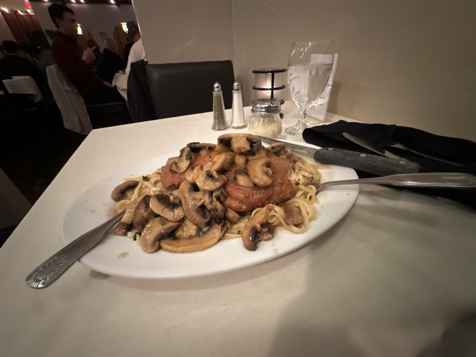 The Shrimp/Scallop Toscana wasnât good. For $35 I wished it was fantastic. The scallops shouldâve been seared or something; they literally tasted like nothing and the shrimp tasted like plastic - not exaggerating. Thatâs the only way I can describe it. It simply wasnât good. My sister ordered the same dish and felt the exact same way I did. I did not eat my leftovers which pains me deeply as I hate wasting food. I heated it up and the sauce split into oil and I just didnât want to bother. My sister also did not eat her leftovers.