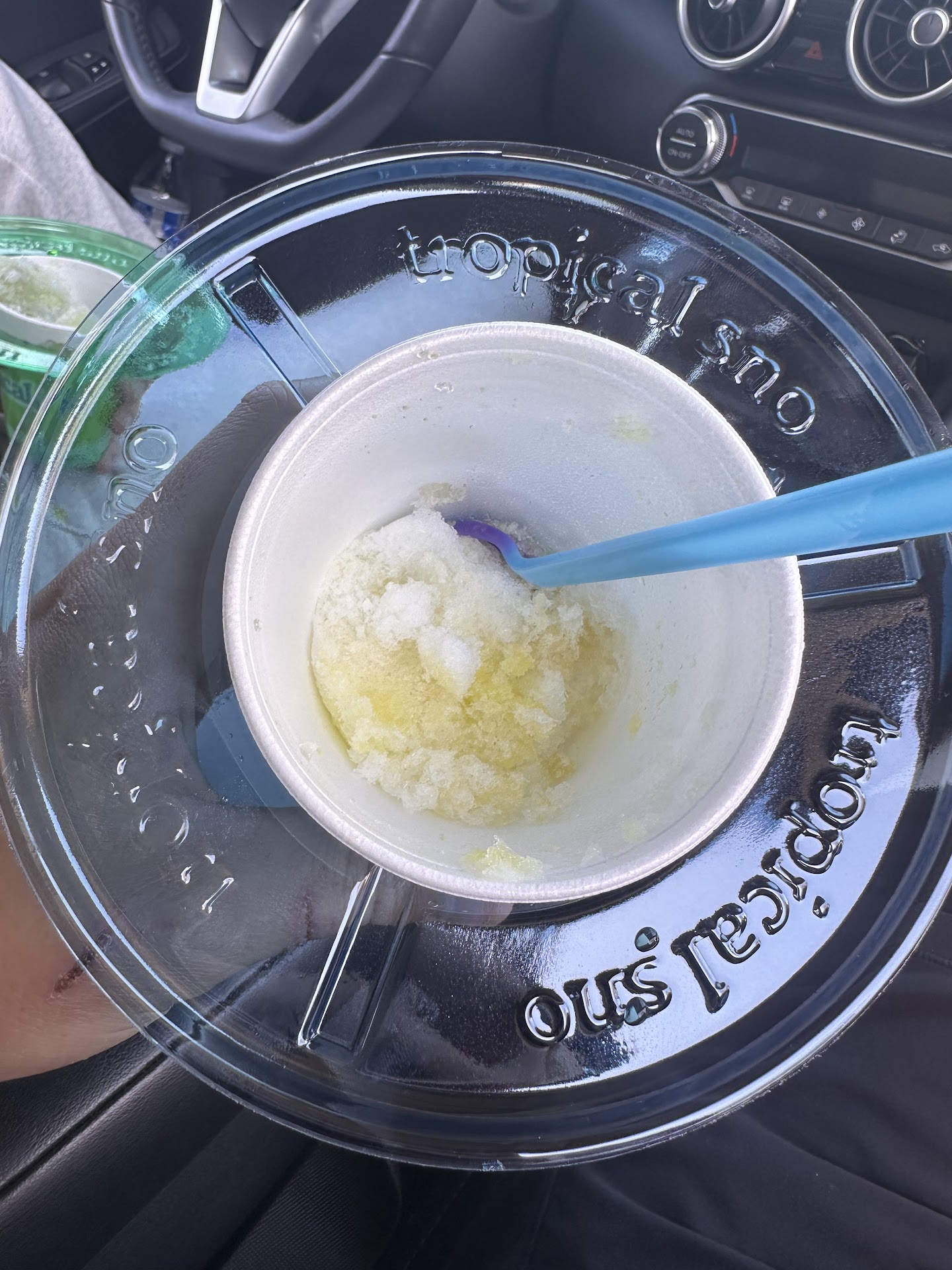 To make matters worse, the customer in front of us was double charged, and the resolution offered—a small coupon—was insufficient to remedy her dissatisfaction. Most of our snow cones were just plain ice, with minimal flavoring. Additionally, the drive-through was poorly managed, with three cars left unattended the whole time we were in line, ordering, and eating.