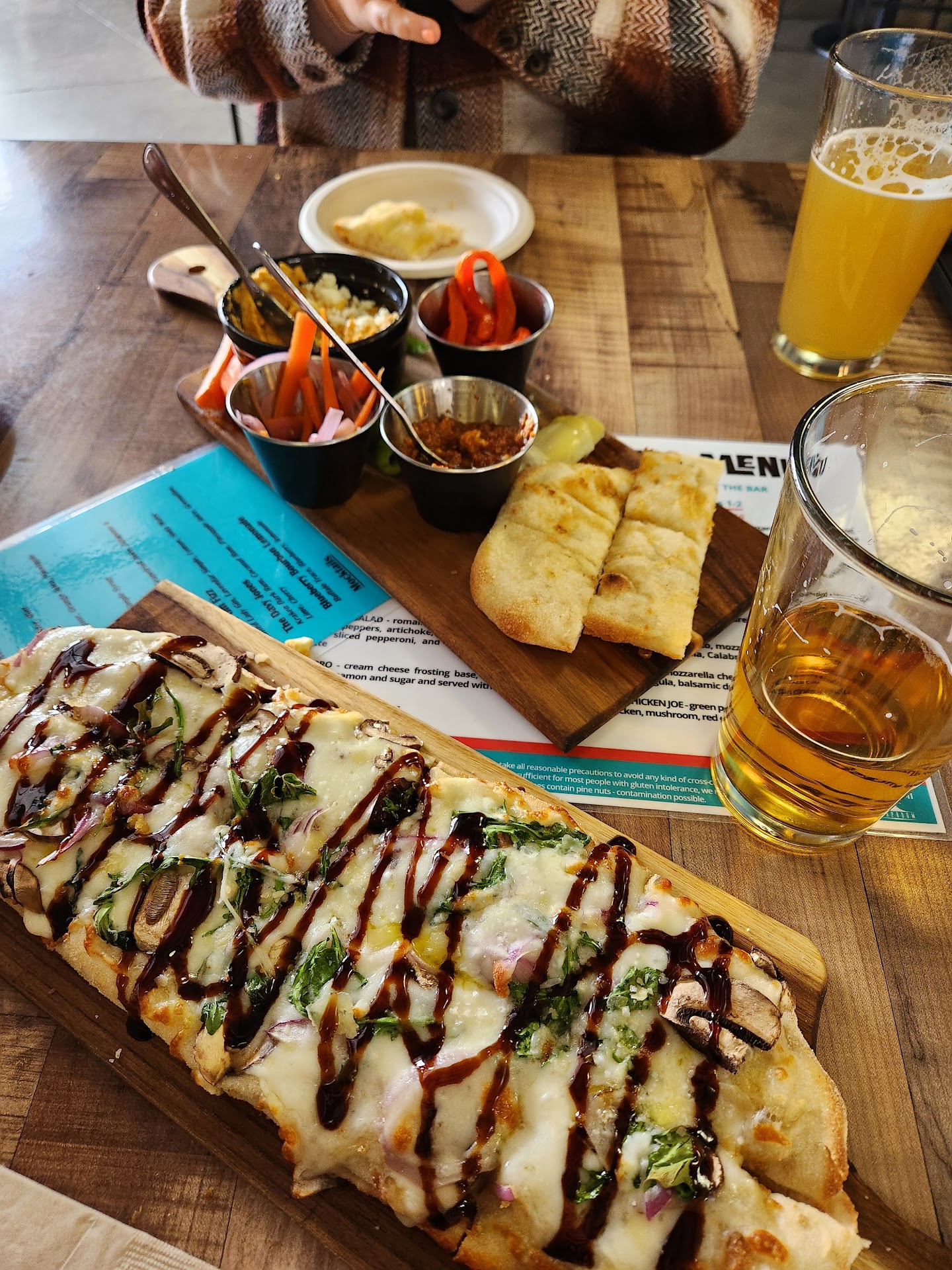 Read moreSmall but tasty. I sampled some of the beer/cider, and I was surprised by one called "belching beaver". (Try ordering that with a straight face) Its a stout with peanut butter! And nitro! It tasted like coffee! I also really like the pineapple cider (#1). I ordered the Korean bbq burger but had it made as a salad. A bit spicy, but tasty. Burger was a bit dry, and you have to order from the foodology food truck on site. Service was super friendly. Nice, clean...