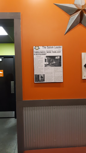 Read moreMy wife and I drive a truck. We were headed to Bloomington IN from Louisville KY looking for a Mexican restaurant to stop and eat. We saw a Mexican restaurant sign on our way into Salem IN then by plain luck we had to take the truck route bypass that brought us to this little gem Tumbleweed Tex Mex Grill. ( Not the one on the road sign ). So we whip in. We are greeted at the door by a young fellow that asked if we had our invitation? What invitation I thought? Well it was training in progress and only for family and guests. What a bummer. Then this real nice other fellow invited us in for dinner and states that tomorrow is the grand opening for their restaurant and wanted my wife and I as his guest saying that they would be no charge for dinner. WOW. Come to find out this guy is the VP of Operations Jeremy Sons what a super nice man. He didn't have to do that but he did, very very nice of him. Now our host comes to sit us her name is Justice very nice girl. Then our server Travis did is job very well and was on cue for everything. We were checked on by almost everyone in the restaurant. Melissa was one for sure, she talk to us for awhile, what a girl. Oh yea I should say something about the food. It was great, cooked and prepared like we wanted. It was so very good. Definitely stop by Tumbleweed Tex Mex Grll if in the area of Salem IN you won't be disappointed. Thanks to Jeremy and his wonderful staff for a great evening. My wife and I enjoyed it....