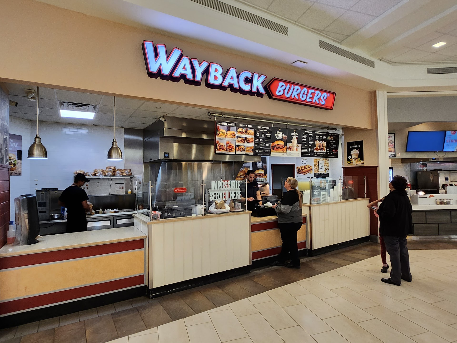 Going to be blunt here, sorry. Never had Wayback Burgers before. Always wanted to try it JUST for the experience. I waited in line to order for far too long. One person on the grill. A huge line of people piled in a corner waiting for food. I'm thinking, okay they are just busy at the moment it will get caught up soon. Nope. Another employee comes out but takes zero orders. He did sport a pleasant air pod in his ear though. Probably why he couldn't hear the customers asking for assistance. The gentlemen who DID take my order was fast, but he looked unprofessional. Are there not uniforms here? I'm confused. It just looked like a circus. Next door, Sbarro was just as busy. However my husband and daughter were able to get pizza that was still in the oven and they STILL got their food before I did. But again, I look over at Sbarro and everyone is nicely kept with uniforms and fully attentive to their customers. The restaurant of Wayback was deplorable. I waited so long unfortunately all I continued to see was the lack of maintenance to this small space. Dirt build up and dust just hanging from everything. Minimal effort is all I see here in up keeping anything. YIKES please clean that place up!