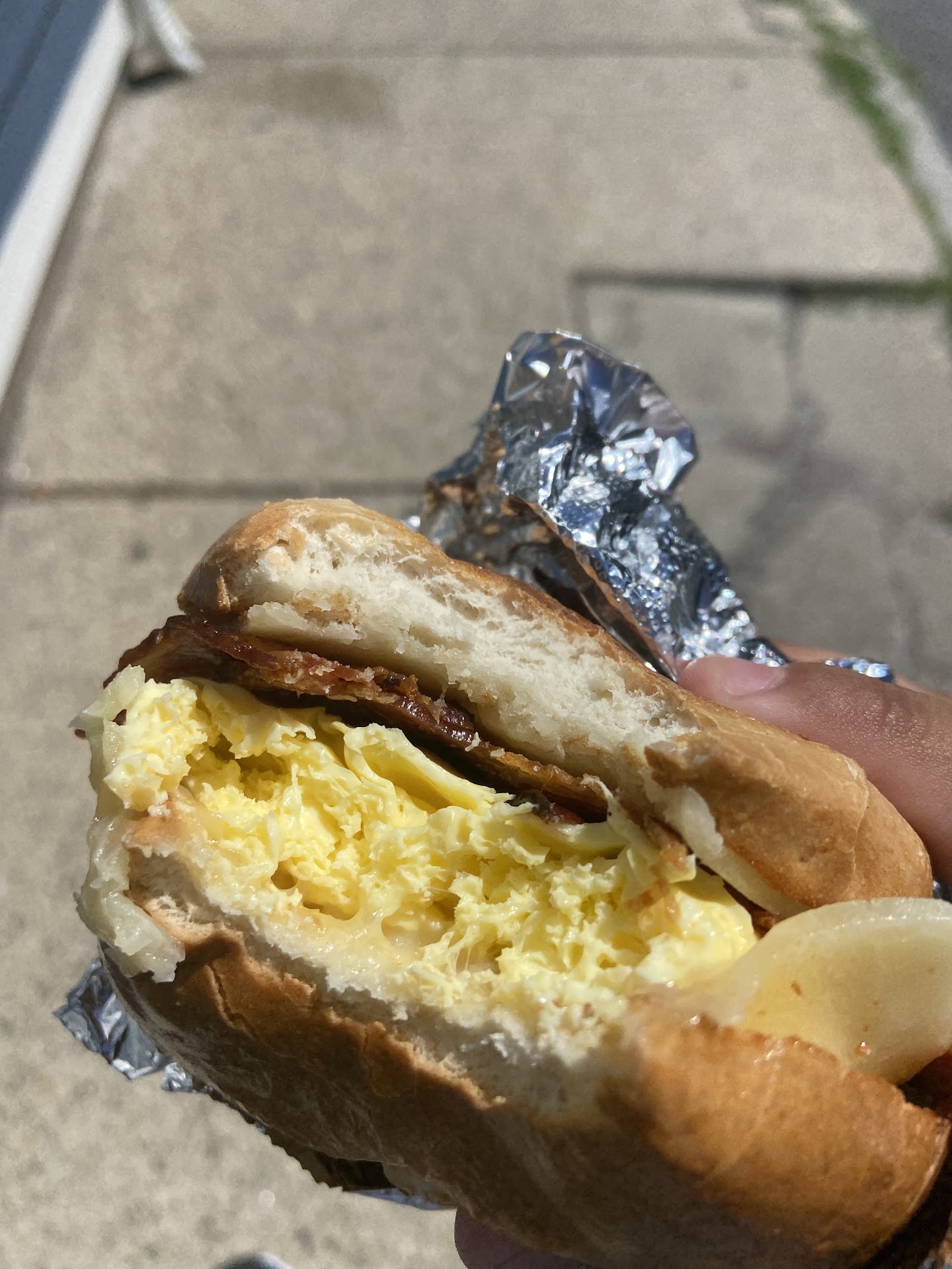 The coffee was nice and fresh, a pleasant medium roast with a slight natural sweetness to it with no bitter aftertaste. The sandwich tasted like tangy slice of heaven! The bacon was perfectly crisp, the folded egg was nice and fluffy, and the cheddar cheese added a lovely sharp tang to the sandwich! Also worth mentioning: their sandwiches come with a choice of cheeses! When I was there, they offered American, cheddar, and provolone.