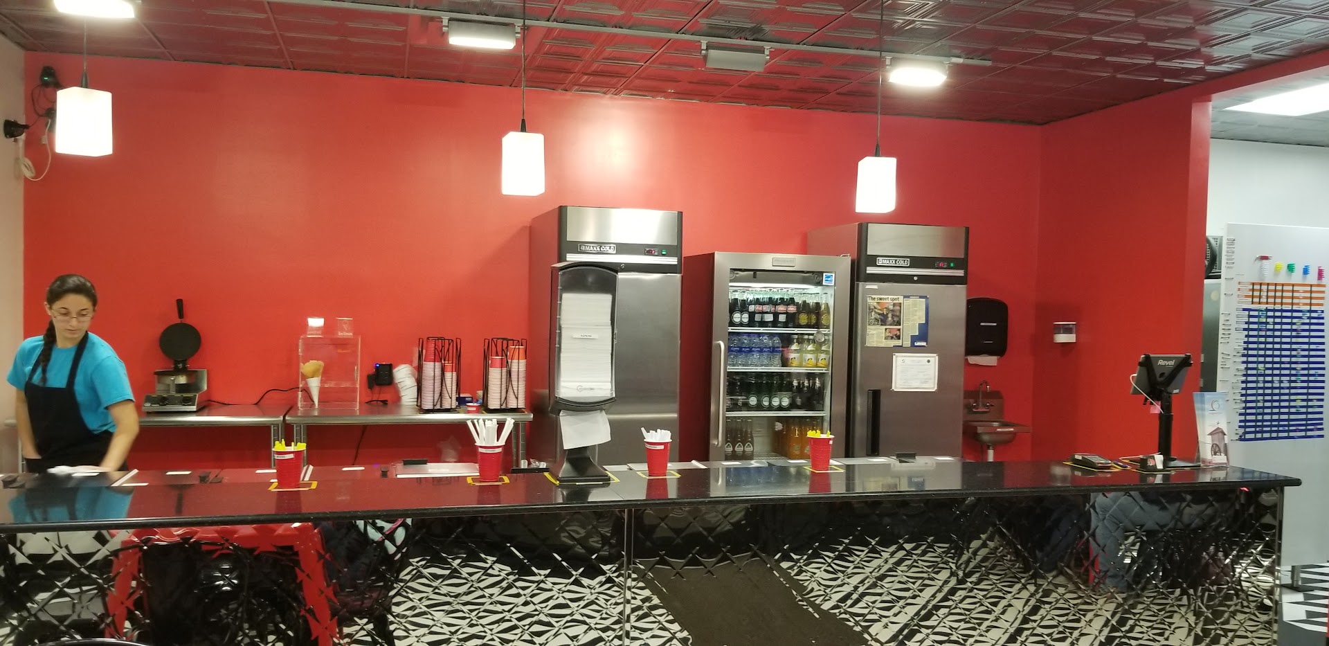 The ambience is cute. It’s simple with a little bit of retro vibe. The ice cream shop is very clean inside and they have outside seating. That was also very well kept up no garbage on the ground and the parking is a right directly in front of the ice cream shop.