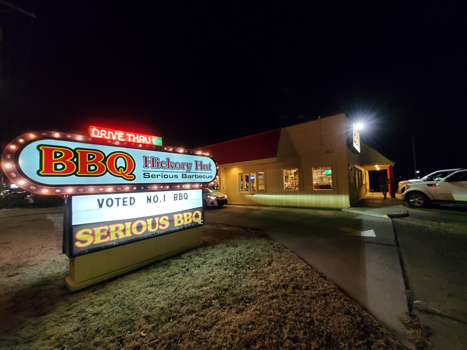 Read moreThis place was really good. I had never heard of it before and decided to give it a try because well I'm on a road trip and that's what you do try new places and things. The restaurant is really visually interesting with almost every inch of their walls covered with photos or some type of art. I had the Burnt Ends sandwich basket and it was good. The sauce was sweeter than I'm used to but it was really good and that's the beauty of trying new places you get to discover that you like certain things. As we were leaving three female police officers showed up in different vehicles so they must have met up intentionally for dinner and since cops know the good places to eat I guess I really did pick a good spot to eat. As the three of them were walking in I made a joke that they all looked very arresting and they actually laughed. Coming from a large city where the cops are all stern faced it's was nice to experience police officers who are not afraid to let their human sides shine through. I even bought t-shirt so I could remember the place. One last thing, if the restaurant management reads this, the men's bathroom was clean like really clean and when you are on a long road trip you have no idea how important it is to have clean place to take a nature break. Thank you to your employees for making the Hickory Hut a tasty and comfortable...