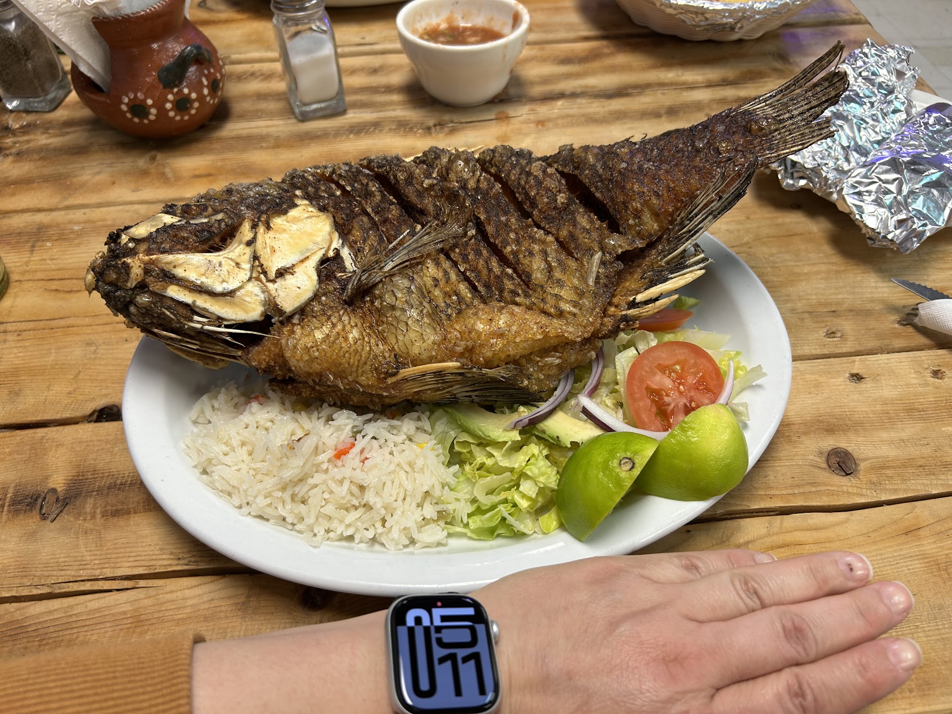 Read moreToday I went to this restaurant for the first time. In my opinion, to be honest, I loved the flavor of the fish (the mojarra), but I couldn't describe the size of the fish 😍 The service was great. I am demanding and yes, I was satisfied... the appetizers they served us were corn tortillas with salsa, which was generous!! The price-service ratio was good. Unfortunately, I didn't give it 5 stars because I only have one criticism: they should take a little more care in taking care of the place! In the sense that to raise the level of the restaurant it would be good if they paid attention to the cleanliness, for example of the walls, occasionally cleaning the tables with wood polish, and putting oil on the edges of the sauce bottles on the tables so they don't look dry. Maybe I'm very fussy, but as a person who likes good food, these little details will raise the atmosphere to the excellent level of the food they served me today 😍 Obviously it's a place I can go back to when I want to eat fried fish and that I can recommend for its good seasoning. Another thing I liked was that they have different table sizes and you can go either alone or with a large group (maybe 8-10 people) because there...