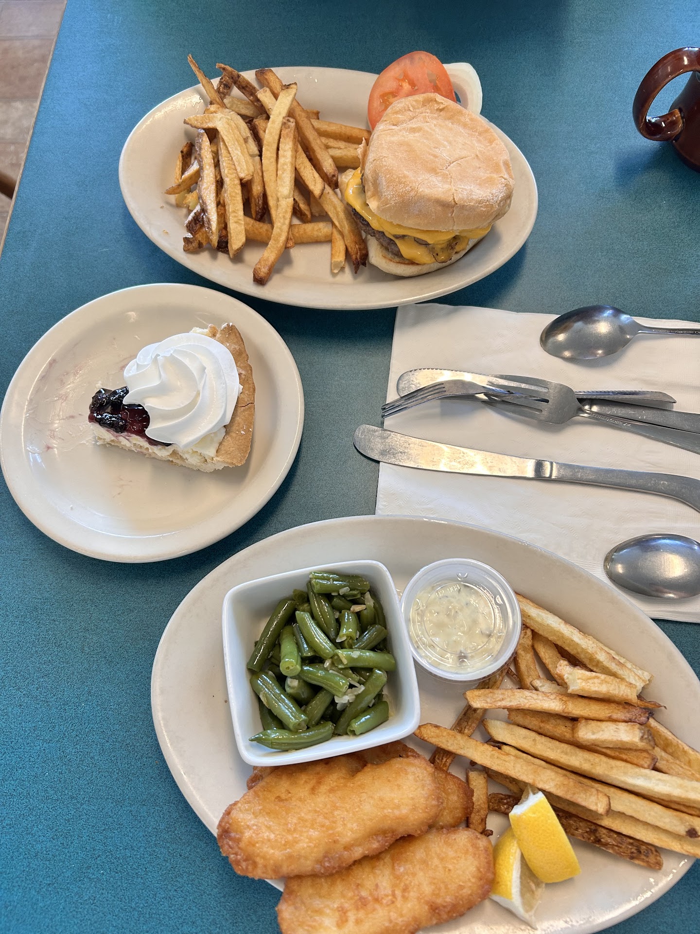 Read moreWe drove nearly an hour to eat here as I have been coming here for many many years. Used to eat here with my grandfather/ family when I was younger. It has really gone down hill sadly. First off multiple sets of silver ware had nasty caked, dried food on it. One of the plates was dirty as well. My salad appeared good till I realized it had extremely wilted, slimy black spoiled lettuce in it. Alot of it. My grandsons chicken nuggets were extremely over cooked ,nearly burnt. The rest of the food was mediocre. Not horrible but not great. The mashed potatoes texture and taste was as if they had been leftovers sitting in a container and reheated, the gravy way too salty and not terrific either. The fries were cold. Tgey were out of multiple items on the menu. Very dissapointing. Then we didn't recieve our scones that were supposed to come with our meals,we were told that most people don't eat them, so they just don't give them to you unless you explicitly ask. Even though they are clearly on the menu as being included. We did not bother to complain because we did not feel like it was fair to take it out on the waitress, especially since the entire place was being ran by teenagers. Not an adult in site. The grill did not even appear to have been being used? As if they had just been reheating things. The waitress was friendly and polite and prompt, so we still tipped 20 percent. We will not be returning again. Which is sad because we do try to support local family owed restaurants. Do not recommend this one anymore, really needs...