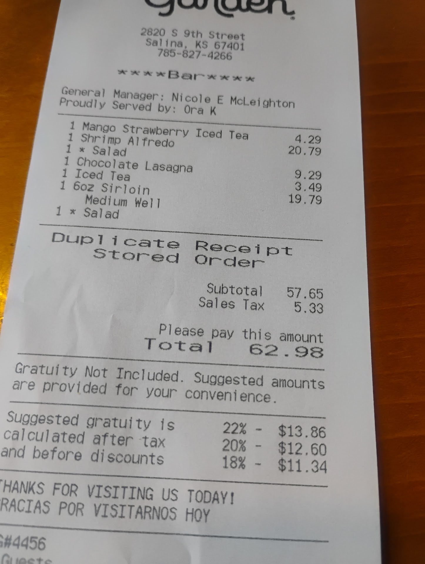 Overall we regretted our decision to come to this establishment today because of the lack of customer service within the establishment. For me customer service should be held to a high standard and it simply was not today. Like I said I am very understanding of the service industry but today Olive Garden...