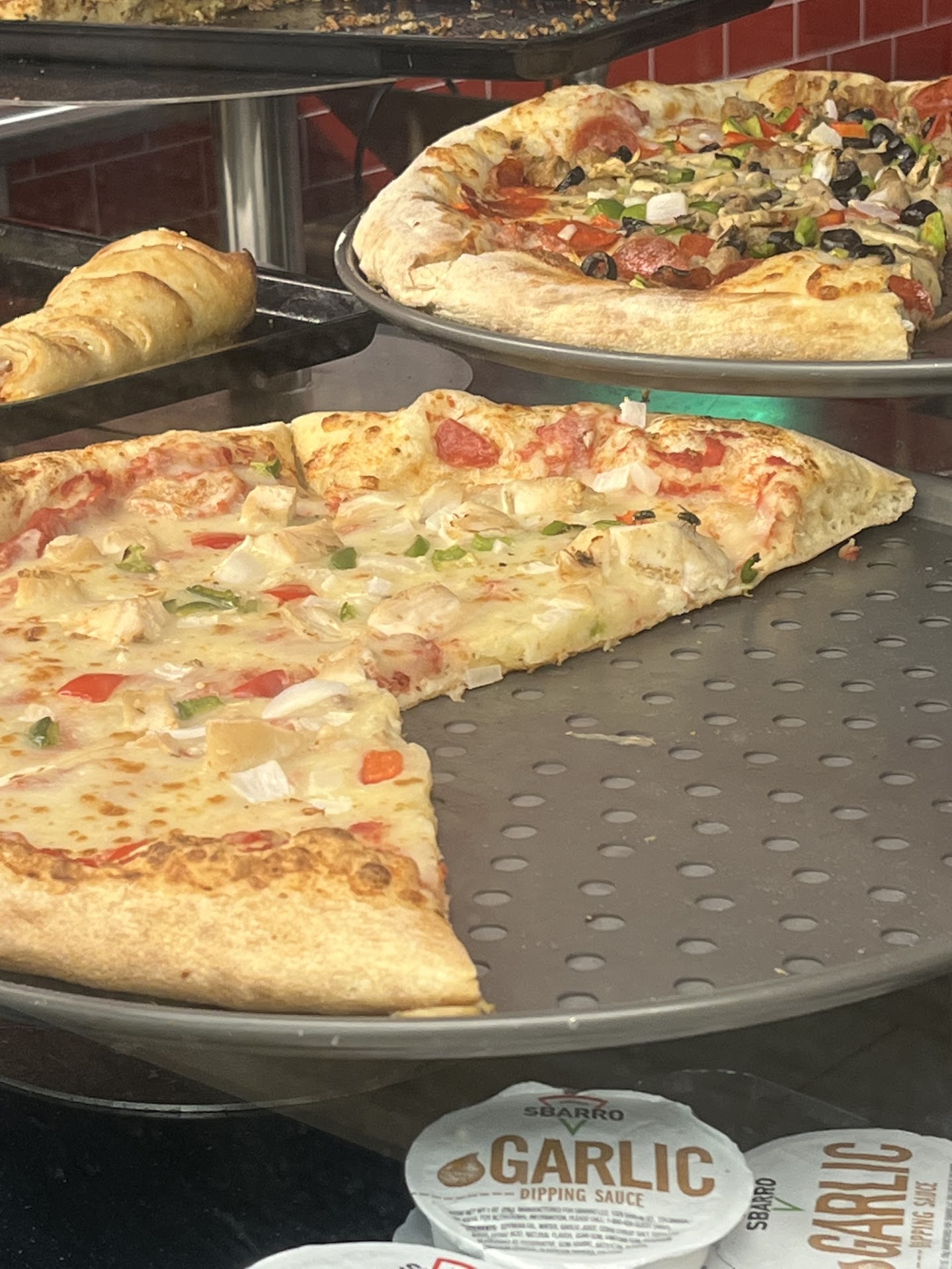 Read moreSo disappointed and sad.....after waiting for years for the return of Sbarro pizza. Visit one: flies covered the slices, and nobody in sight so I could order a whole pie. Visit two: flies covered the slices and nobody in sight so I could order a whole pie. Visit 3: no flies, and I was able to order an entire pie! I emphasized EXTRA SAUCE, because it is usually a bit skimpy. I return and get home to find that it is mostly all bread and cheese....perhaps 5 TABLESPOONS of sauce. I will return again, hopefully with a...
