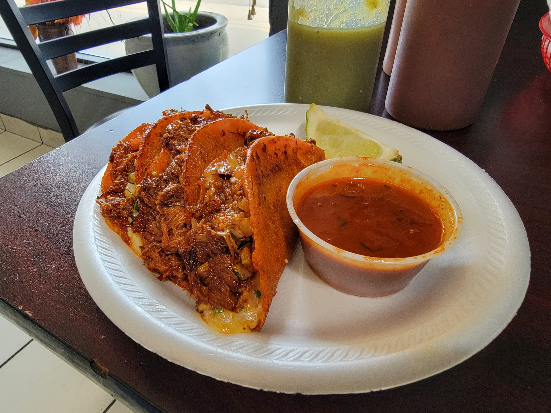 Ā Ā Ā Read moreStopped in here on a recommendation. Grabbed an order of Quesabirria tacos with corn tortillas (on the employee's recommendation). Honestly, I'm very happy with the meal. Meat was cooked well, good amount of cheese, decent portion. The tortillas were lightly crisp with good texture. They were slightly bland, but a touch of salt really elevated them to fantastic levels. Docked a star for underseasoning, but with salt at the table, this could have been a conscious decision on their part to suit the taste of more people. So yeah, highly recommended. Just remember to pop them open when they are still hot and...