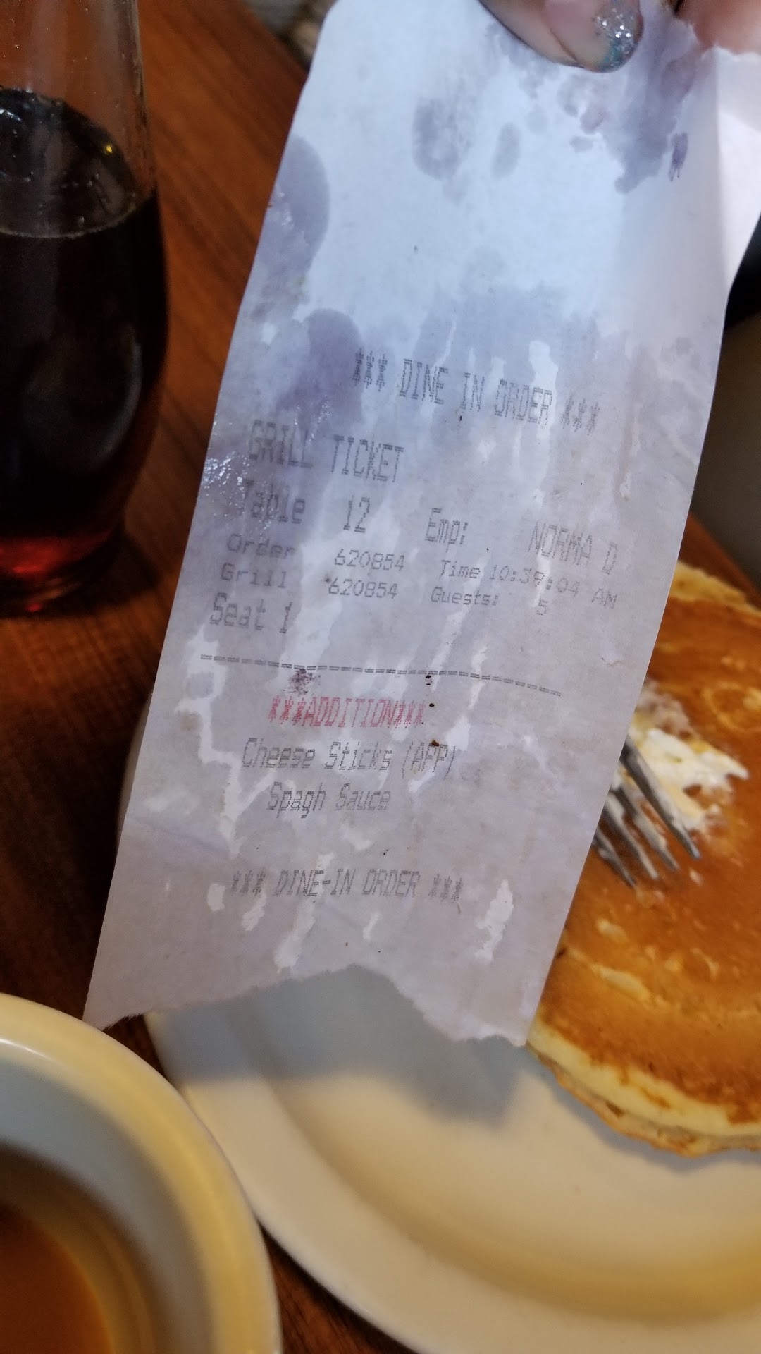 So of course I picked this one when I saw it on Google maps on my trip! So it wasn't too bad inside restaurants was ok The lady greeted us at the front took us to our table everything seemed fine we ordered off the menu of course a lot of that big bacon stuff going on at Denny's I can tell so my wife got breakfasts with bacon and this is where it falls so our waitress just drops off our food and I'm surprised the waitress didn't notice the bacon was totally burnt to a crisp like that bad and she just dropped the plates down and took off and it took a long while before we can get her to come back or anyone to get us some freshly cooked bacon and take away the old burnt bacon and when she finally saw it at our table she act like she was shocked I'm thinking if she would have saw it to begin with she wouldn't have been shocked she would have said hey there's something wrong with your bacon let me get you another bacon but that's the only issue we came across is just the food was burnt and the service! It was just ok like you figure somebody would've notice something and bring it to your table and say if you like your bacon like this! If so I'll leave it If not I'll get you some new bacon that would have been the right thing to do besides...