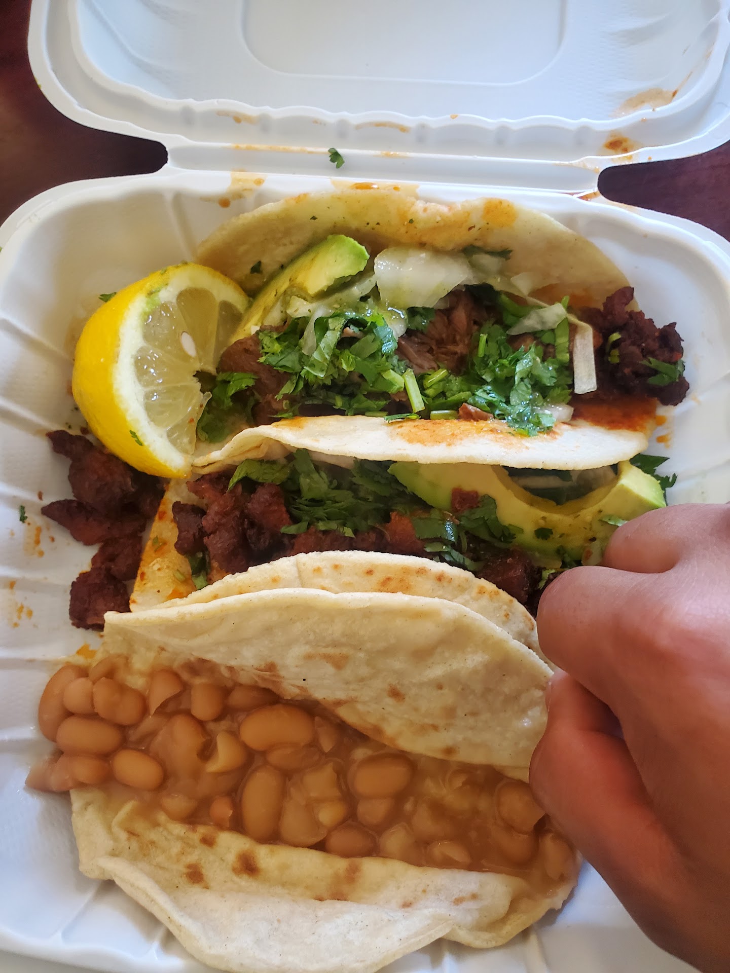 I will say I like the meat or grilled shrimp tacos made w homemade corn tortillas from davis and usually order a burrito to gift to the homeless guy outside not allowed to enter their premises.