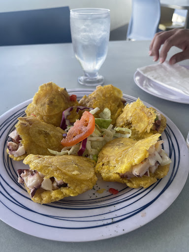 The restaurant is located in beach and fishing neighborhood, very nice and of course, sunny and windy. The facilities are very nice, with a dining area with air conditioning, an area like a balcony to the sea (you can also feed the fish) where you can enjoy the sea, the seagulls and even see the windmills from Santa Isabel. You'll always see a guy in the front of the restaurant pointing to where you can park your car. The table service is very good too, with the waiters usually checking if you need something and making some great suggestions if you need help selecting a dish from their menu. The majority of food feel fresh and the quality good. The mayo-ketchup (pink sauce mostly made of ketchup and mayonnaise, very common in PR) is serve is a very little container. So if need more for your food, you'll need to keep asking for more. Overall, it was a nice experience and the view is relaxing. It would've been better if not for the music selection or maybe the volume could be adjusted. Although, I guess, when people drink too much they don't...