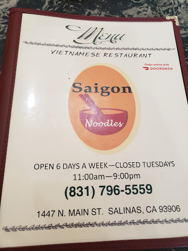 Read moreSaigon Noodles in Salinas has been opened for 5 years. Their restaurant is VERY VERY CLEAN and the decor is simple but nice. The staff was friendly, and was willing to make some adjustments to what we wanted for our order. The drinks are AMAZING....and they have lots of varieties you can choose from. With Boba or without. The Thai Ice Tea is so delicious and our waitress was nice enough to tweak my Peach Ice Tea so it wasn't so sweet! The Mango and Papaya salad was perfect...not too sweet and they give you so much!! One of their popular items is their Garlic Noodle dish. We'll have to try it next time we go. Food was delicious and fresh tasting and portions are large! Presentation was very nice...