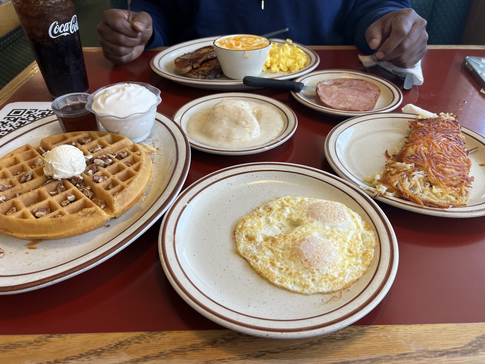 Read moreWaiter and service in general was excellent Very accommodating to say least. Breakdown on the food there: I ordered the Eggs Benedict because it is my favorite dish. The hollandaise sauce was on point, nice and buttery. The eggs were poached decently although one was a little under cooked while the other was a little over cooked. I gave the waiter some advice on how to correct this situation, just turn the heat down a little bit on the water that way when the eggs are ready they will at least come out the same. I really liked the use of the thin ham instead of Canadian Bacon. I feel it adds to the flavor. The hash browns need help. I understand cutting costs, but some of the frozen hash browns that come frozen have little to no flavor. I would recommend the country style potatoes, those were much better on flavor. Since the place is called the Waffle Shop, I asked if I could sample their waffles. 1/4 of a waffle made from their own recipe was delivered. Mmm, it was a great waffle, so next time I go I'm going to try a waffle plate. All in all it was a great visit and I look forward to visiting the...