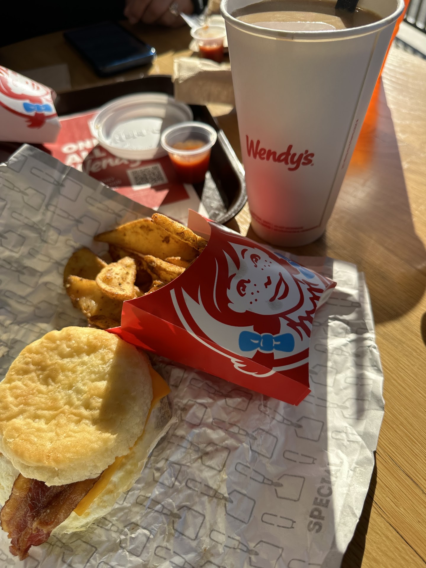 Read moreUntil today if you asked me how i felt about wendys hands down i would have said oh i love wendys. ❤️ However the son of the baconater has changed all that. What a let down. It is nothing more then a jr bacon cheesburger without the fix'ns meaning no lettuce onions or tomato's and there wasnt even that much bacon. i had the Cheddar bacon baked potato with my combo meal no flavor, or at least not much. To top this visit off, i excused myself in order to go to the restroom imagine my surprise when i went to get some toilet paper and the despinser was empty. Thank goodness i always carry wipes with me or i would still be stuck in...