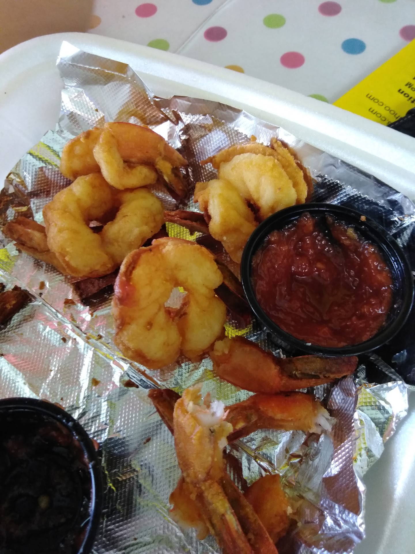 Read moreI usually have a very good experience here, the food is usually very delicious and generous portions, I had gone to One Fish Two Fish yesterday to order some fried oysters, they said that they were out that they were very sorry and will have some tomorrow, so today after I got off of work I went there and at first they said they weren't going to fry any food today that it was it just all boiled food, but then they went back and checked with the cook I guess and they said that they could do it so I wait about 15 minutes and then my orders ready I paid 9.95 for the 7-piece appetizer and then I wanted to order 3 more so I ended up paying $15 for 10, so when I got outside opened my box and I found 10 little scrawny pieces of oyster most of the batter had fallen off, I was so very disappointed I've always. Have got nice size oysters and with perfect batter on them, I was just too tired to go back in there because I have just gotten off from work, but I will never go there again, I don't think they had the same person cooking the oysters, they should be ashamed of serving such scrawny small oysters used for frying. I do recommend not paying for your order first and pain when you pick it up, before you pay for open up your box to see what it looks like before walking out...