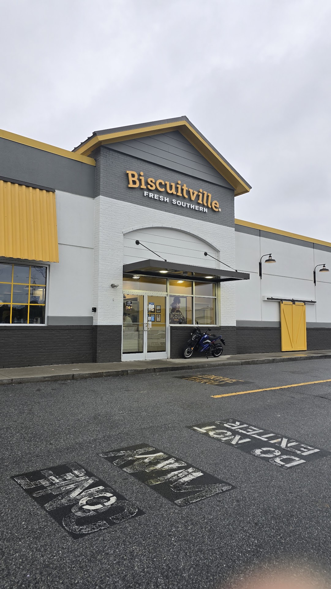 Read moreI had a doctor's appointment this day and when I got off the exit I noticed the biscuitville. Where I'm from, they are everywhere. I was excited to see it because I really wanted breakfast but didn't have time to stop. As I was leaving my doctor's appointment I noticed that there were people in the drive-thru and immediately made a u-turn. I went inside and was greeted by the lovely staff. I had a lot of questions because the menu has changed significantly since I've been inside of one. However I found what I wanted which is usually the only thing I ever get. That is the country steak biscuit I believe it's called. Keep in mind it was already 1:30 and they close at 2:00. This I had forgotten. So I already prepared myself to receive something stale although I was going to be happy with it nonetheless because I haven't had biscuitville in over 20 years. I placed my order and I added eggs and bacon on the side. When I tell you I received all of my food fresh, I was extremely ecstatic about that. They literally dropped the steak to order a long with the bacon and egg being cooked to order. I noticed that the biscuits had just come up after placing my order as well. Lately I had been going to Bojangles because they have a country style steak biscuit. However, there's more biscuit than steak and you're lucky if you get it fresh. When I tell you the steak and biscuitville was bigger than the biscuit... And I don't know if they just pull the bread filling out automatically or what but I was happy with what I received. I found out that there's one closer to me now and I just might start getting up extra early just so I can go get the breakfast that I want because I know I will be happy with it. Those ladies at that store are simply amazing. Great experience, clean restaurant and bathroom. They all...