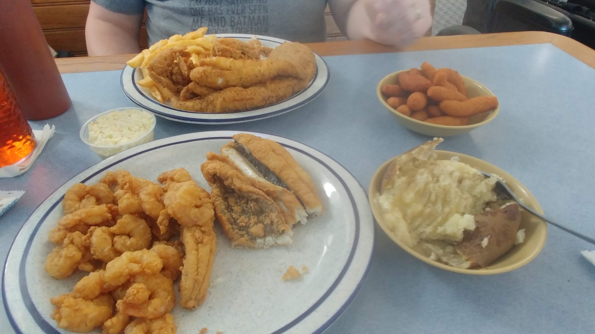Read moreOverall the experience wasn’t horrible. When I tell you it was the worst steak I’ve ever eaten I’m not being dramatic. I ordered the 8?oz ribeye with popcorn shrimp, a side salad, baked potato, and fried okra. The fried okra which the waitress said was the best part actually were which is kinda sad, and I should’ve noted that more, but her service up until giving me the food was great. She never came back and I had to actually go get her to pay. The dressing on the salad tasted watery and lacking flavor, the shrimp lacked flavor and even the cocktail sauce had no heat and little flavor to it. I see a bunch of good reviews on here but I didn’t have that experience last night. Then all together 29 dollars for that is a little expensive for a family seafood restaurant. I would’ve been more happy going to Waffle House and gotten a better steak with just salt and pepper thrown on it. Needless to say I paid. Another odd thing was it was dead empty in there. I went to another chain restaurant across the street to get an item I’d been craving but the wait was an hour. This is the south where if a family business like that is actually good it’ll be just as packed or more than a place like the chain restaurant. Maybe I’ll go back for lunch and try to get a less expensive meal and try it again but man was I disappointed in spending 35...