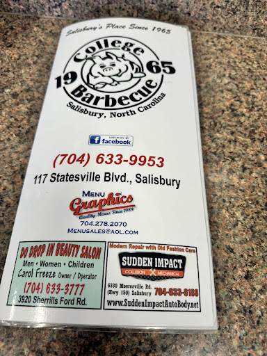 Read moreThis would be my last meal request if I were dying. And it would be hard to limit myself because everything here is good. I’ve paid fed-x a few hundred dollars to overnight $50 worth of bbq and hot dogs. And it was worth every penny. When we come home from wherever we are living, we never headed to grandmas first. It was always College Barbecue. Footling hotdog with chili and coleslaw, wrapped in wax paper and plopped right down to the table. Don’t need fancy plates and don’t even want them. A basket of hush puppies. The best chopped bbq and coleslaw tray (again, wrapped in paper) and a fresh bun. Order a Cheerwine while you’re there. Salisbury’s their home. I like 1/2 Diet Cheerwine and 1/2 Diet Coke and when I order it that way, they don’t act like I’m crazy. This place has been here all my life and it’s the same. Even with new floors and furniture and a drive through window, it’s the same. I’ve been to 3 star Michelan restaurants and if I could get a meal from anywhere in the world, this would be what I’d want. Even with its bathroom outside. Yeah, you heard that right. You go outside to get to the restroom. A throwback I think to when it was mostly a...