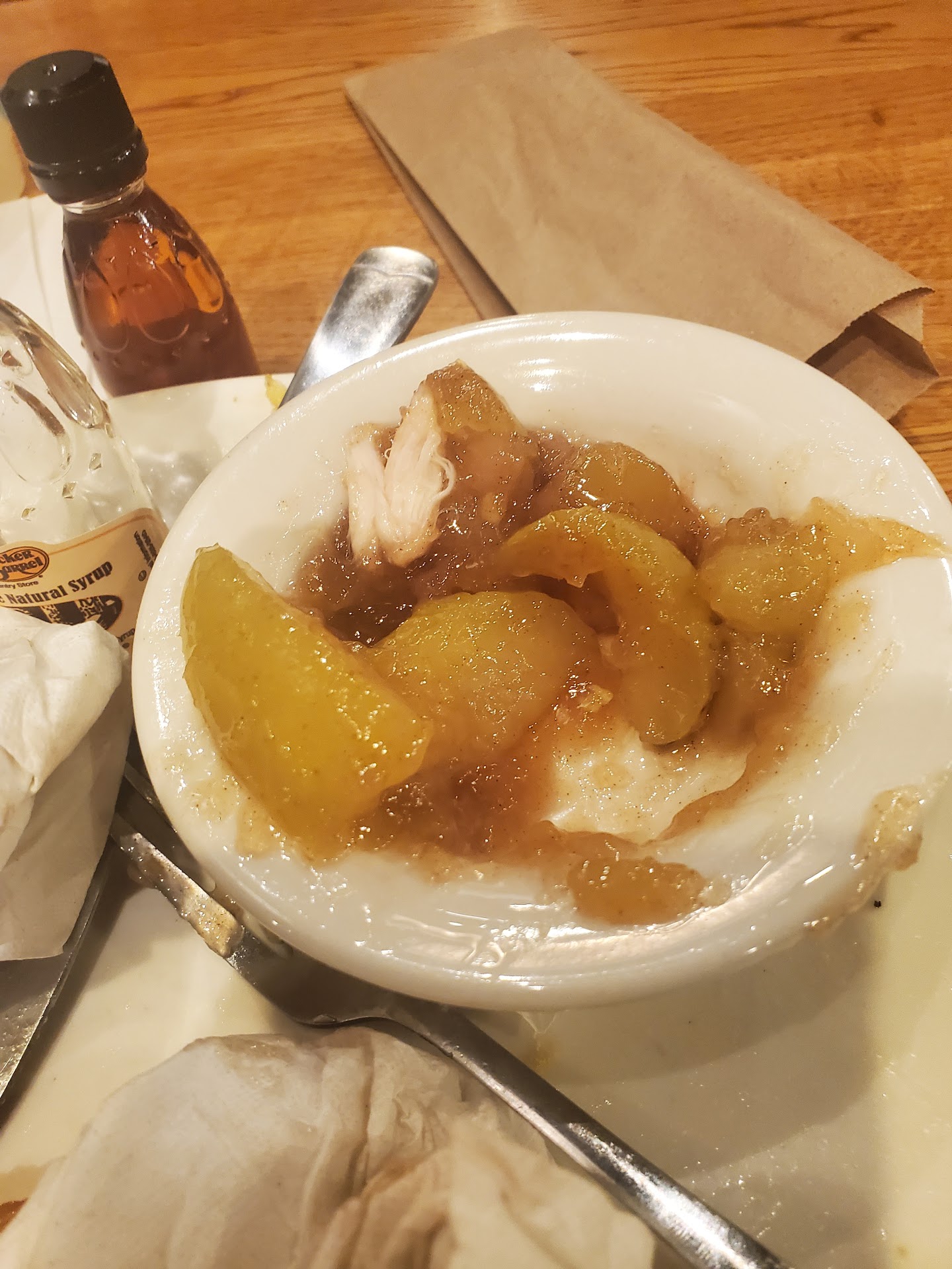 Let me first start by saying that I love Cracker Barrel and I have six years of food service experience, so I get it... not every night is going to be a good night. That being said, I have NEVER not tipped once in my entire life until last night. The restaurant was not busy when we entered at 5:00 pm on Dec. 10th. We were seated and looked at our menus, waiting for our server to arrive and ask about drinks. Well... at least 20 minutes passed before another lady (who I later learned was the manager) took our drink order and disappeared. She came back with our drinks, but still no sign of our waitress, "Cheyenne."
