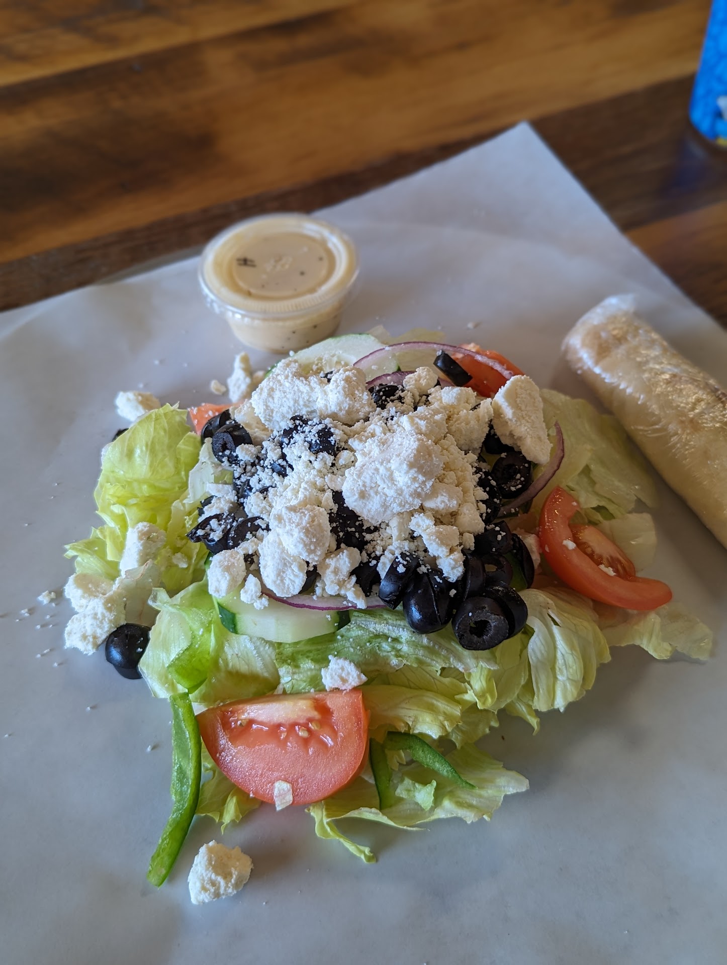 Read moreStopped by this spot for the first time. Simon welcomed me with a smile and was very kind. As I usually do, I ordered a Greek Salad with house dressing for here. Well, not only was it delicious, the way it was served is a first. So often I've been given to-go salads in plastic when I eat in and it's just not as ideal...check out the picture! There's a lot of places to eat around here...try Crossroads if you're looking for something fresh and delicious.